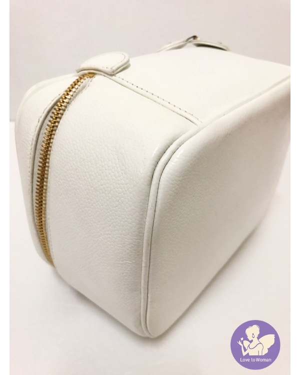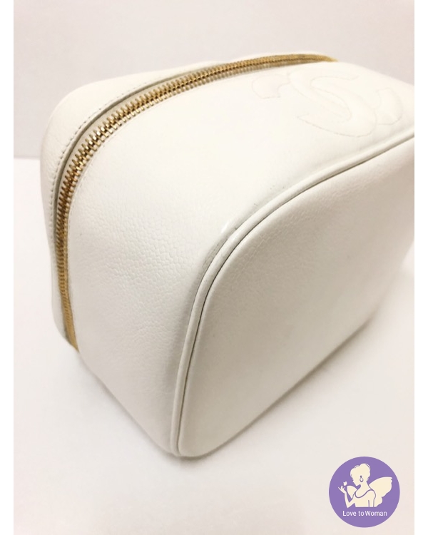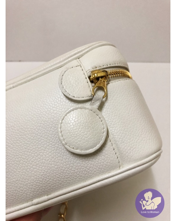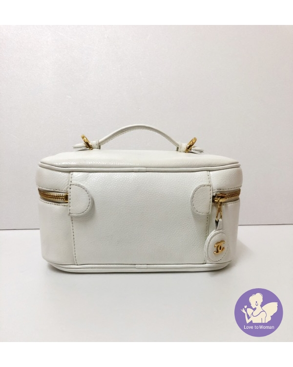 ​Chanel 香奈兒 小香 經典老香 白色荔枝皮 化妝箱包 手提 肩背 斜背包✨
