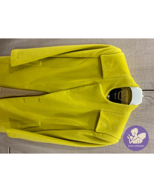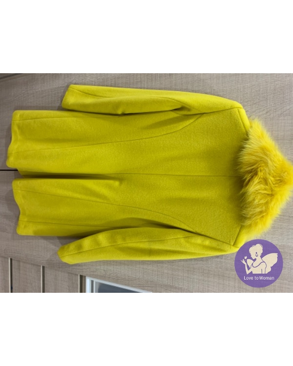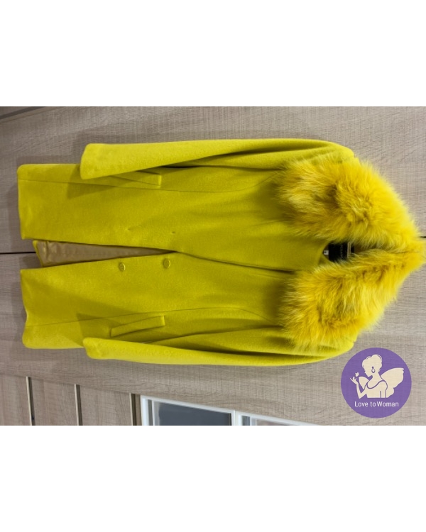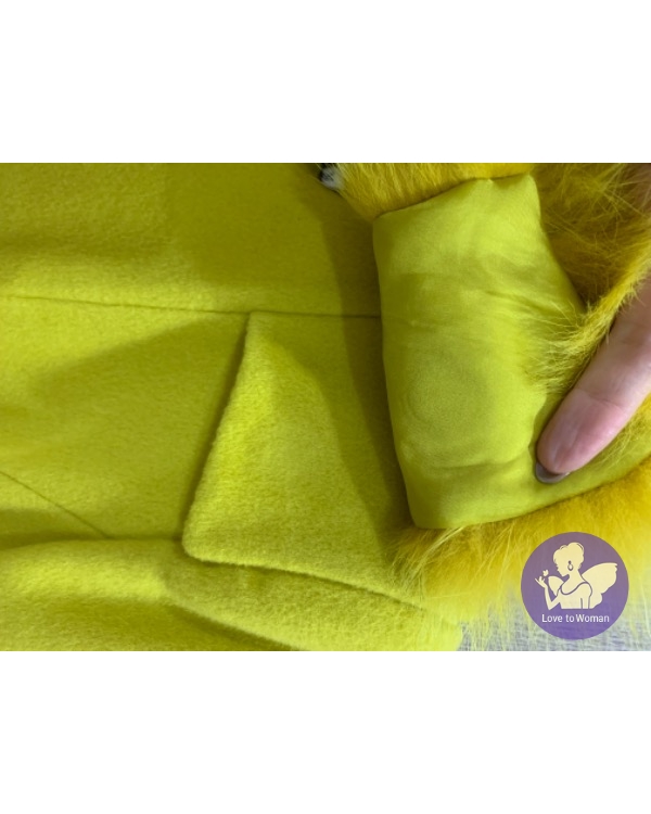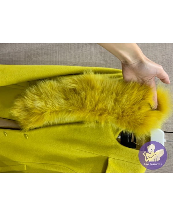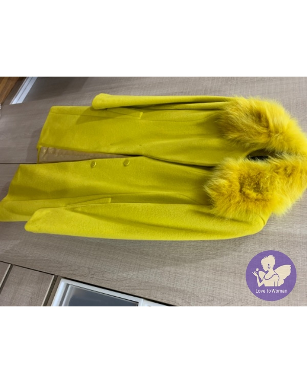 首頁 精品服飾 國內設計師黃惠玲PESARO黃色毛領長版羊毛外套