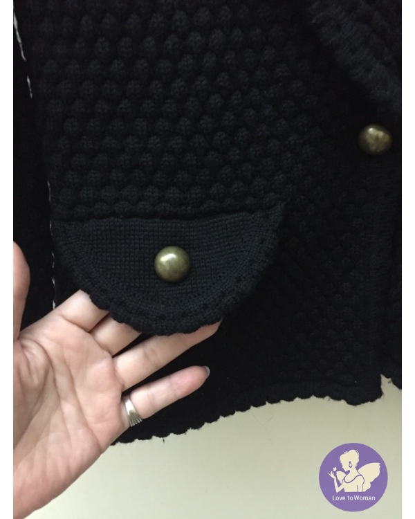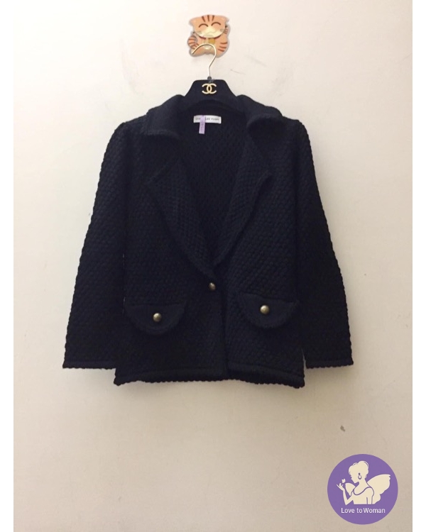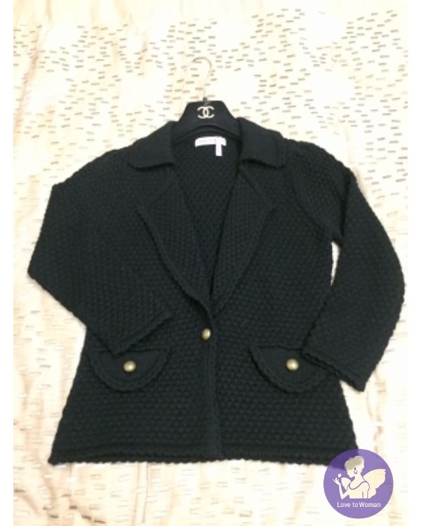 張李玉菁黑色羊毛小香風珍珠毛球針織小外套購於專櫃購價約8260穿過幾次送洗回