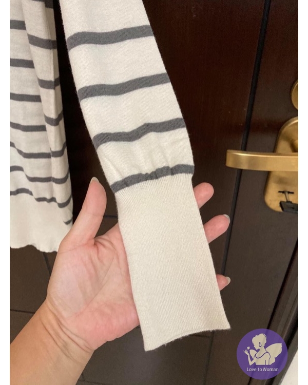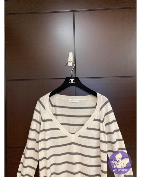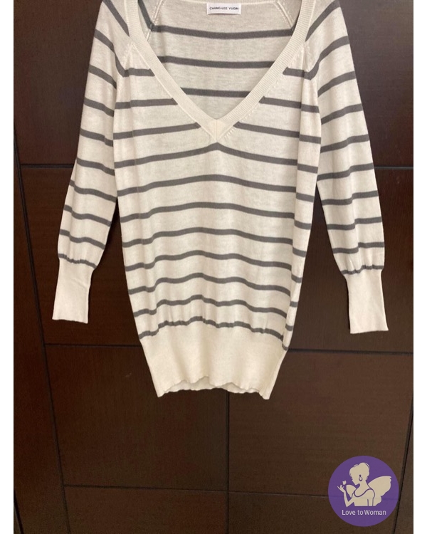 張李玉菁米灰色V領條紋針織上衣 購於專櫃購價約$8260穿過幾次尺寸長75胸47落肩款 好看的米灰色條紋V領針織上衣也是永恆的經典款式不退流行典雅大方搭配牛仔褲輕鬆休閒穿上裙子也可正式端莊cp值很高的單品 出清價$1480含運郵局寄出售出不退感謝辛苦管理員謝謝美女們推喔她團