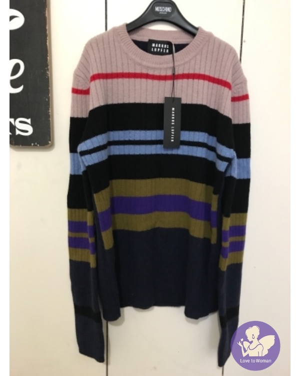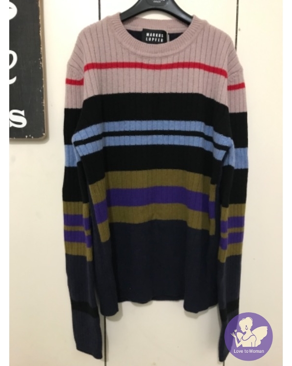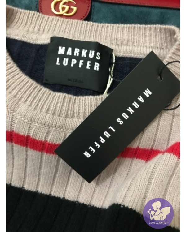 首頁 精品服飾 全新Markus Lupfer彩色條紋拚接造型羊毛衣
