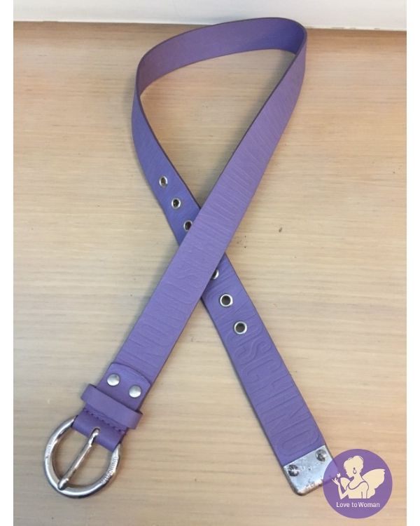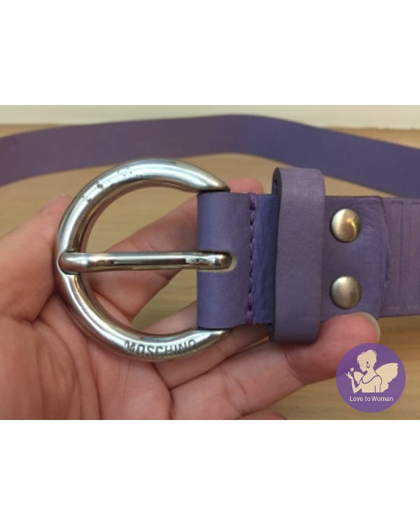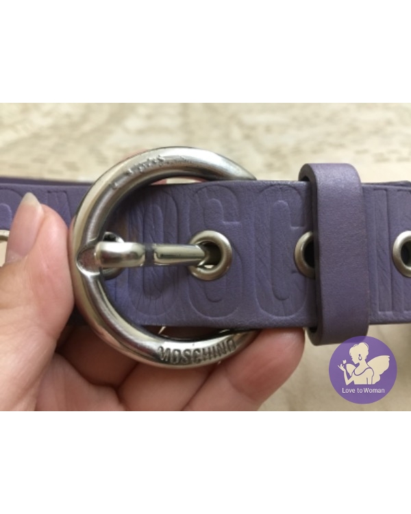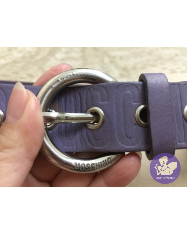 MOSCHION紫色字母logo皮帶購於專櫃購價約8千很少用尺寸寬約3.5長109 紫色圓頭扣環整條字母logo印花明顯的標誌一看就知道是她家的東西紫色也好搭配牛仔黑色基本都沒問題 皮帶尾端的鐵皮些微氧化一個釦眼邊緣有點變色照片有拍出其實也看不見介意勿喊 便宜出清 出清價$1680含運郵局寄出售出不退感謝辛苦管理謝謝美女們推喔她團