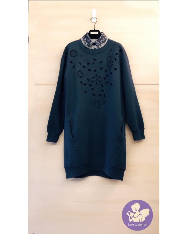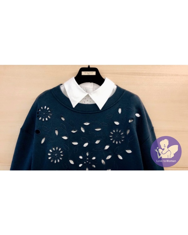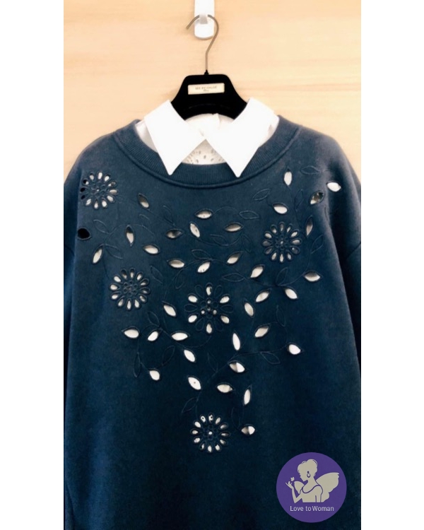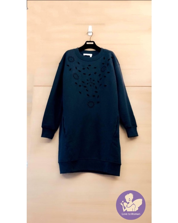 See by Chloe 深藍色縷空花紋棉質內刷毛連身洋裝