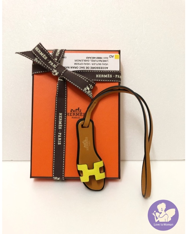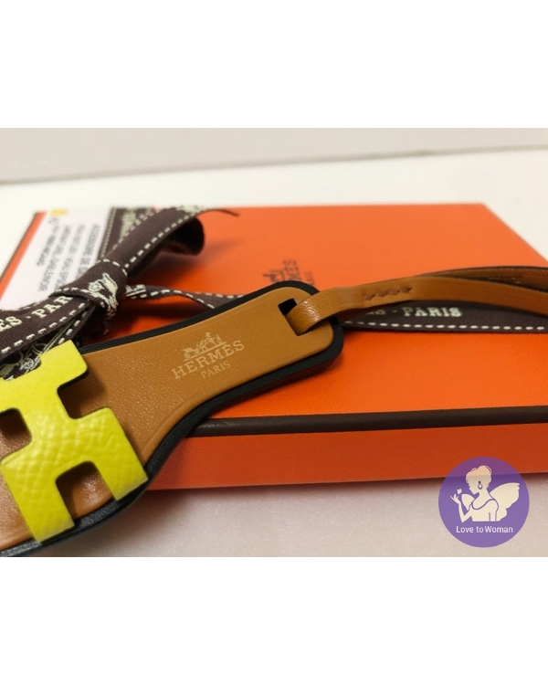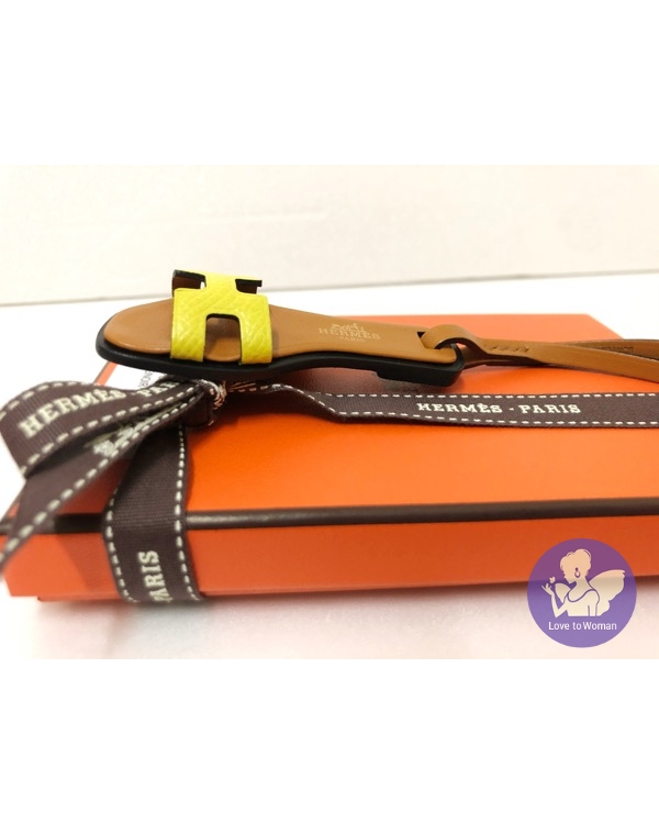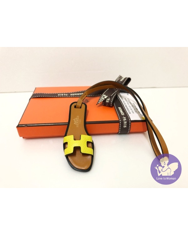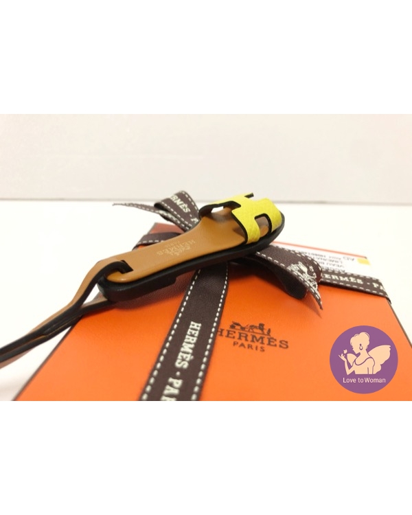 Hermès 愛馬仕 經典 LIME 檸檬黃 Epsom 牛皮 Oran Charm H拖鞋吊飾 全新✨