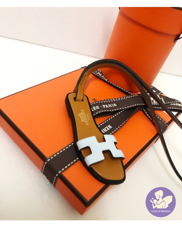 Hermès 愛馬仕 經典 To 聖杯藍 Epsom 牛皮 Oran Charm H拖鞋吊飾 全新✨