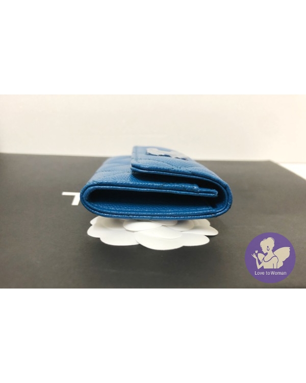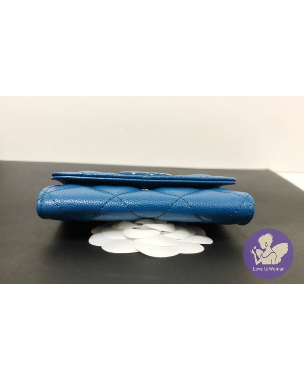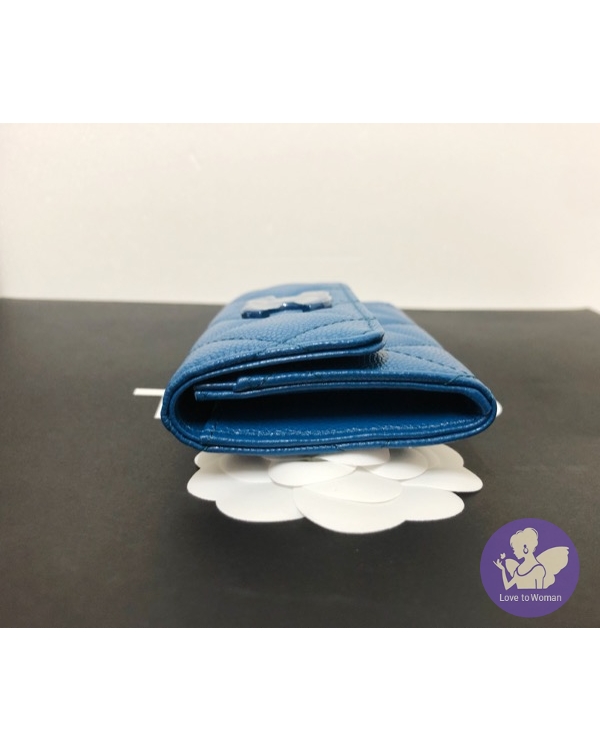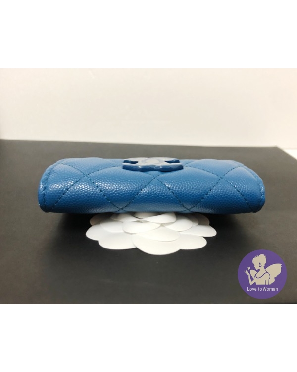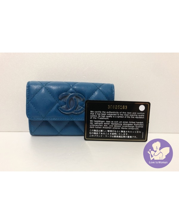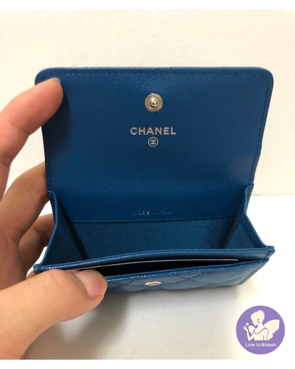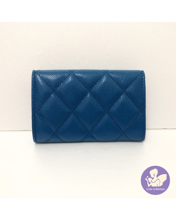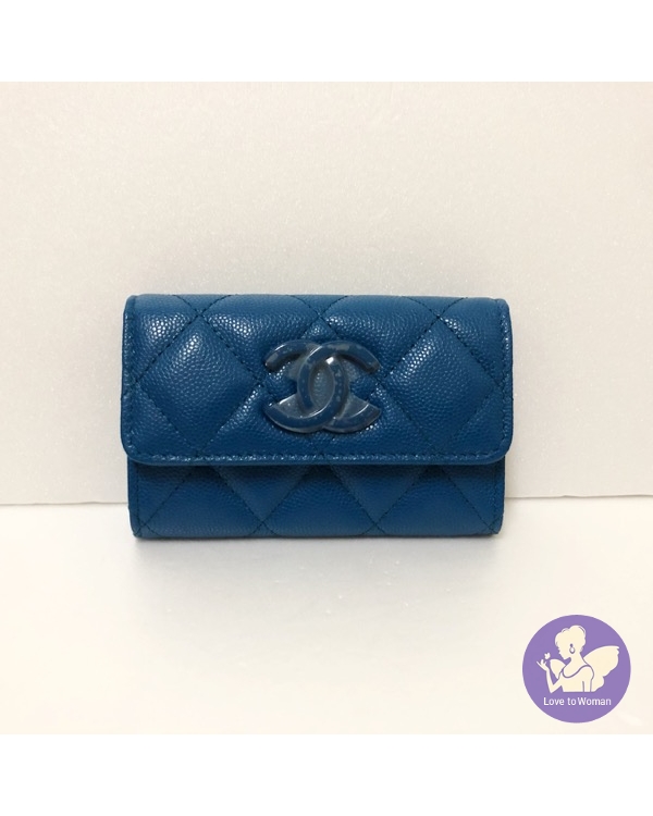 首頁 精品手錶 ​CHANEL 香奈兒 小香 2021 早春系列 海軍藍牛皮 琺瑯扣 大雙C logo 單層 零錢 卡包 全新✨