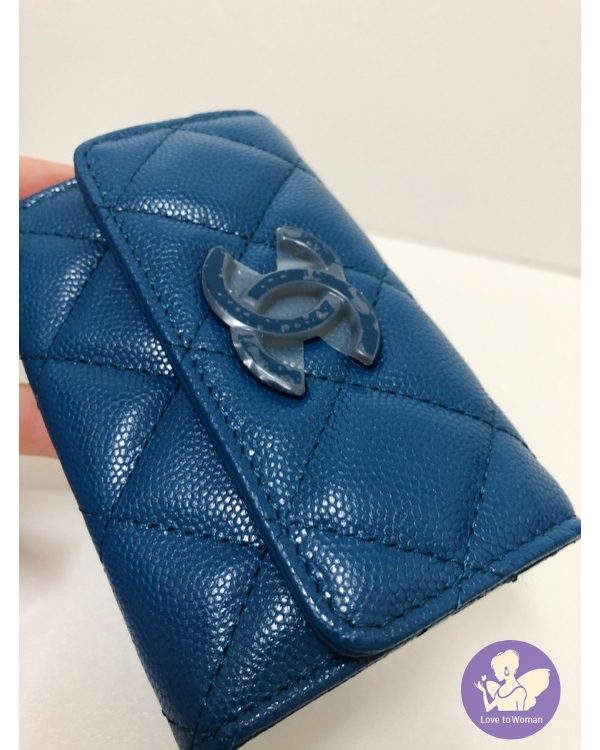 ​CHANEL 香奈兒 小香 2021 早春系列 海軍藍牛皮 琺瑯扣 大雙C logo 單層 零錢 卡包 全新✨