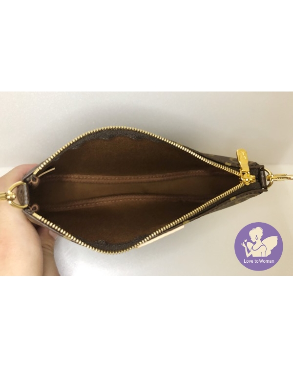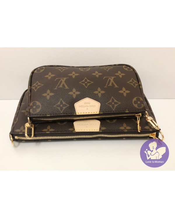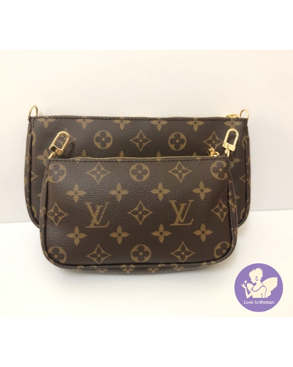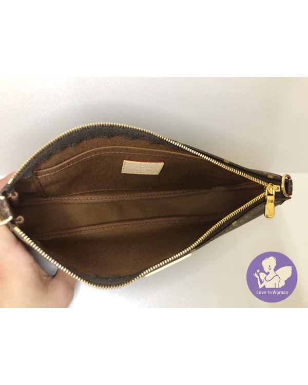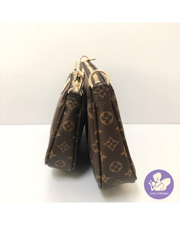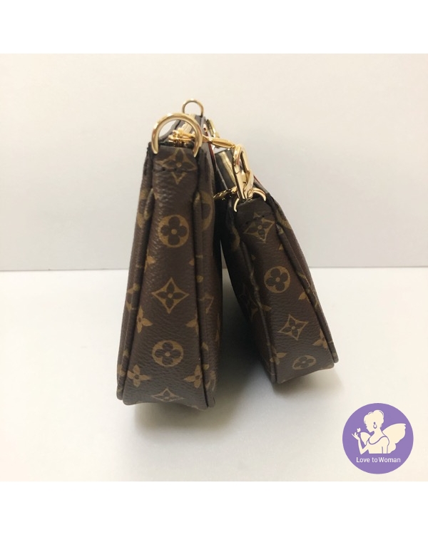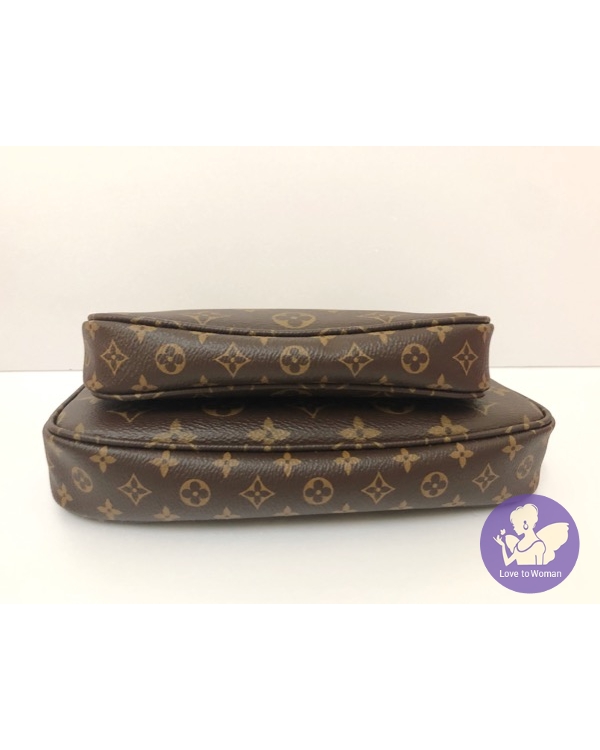 這款Multi Pochette Accessoires是一款混合式斜背袋,設有多個口袋和隔層,結合Pochette Accessoires、Mini Pochette Accessoires和圓形零錢包於一身。此袋以Monogram帆布製作,兩個小型收納包的側面飾有迷你Monogram圖案,設有可拆式金色鏈帶和可調節長度的Louis Vuitton標誌提花肩帶,方便以不同方式攜帶。