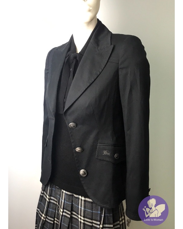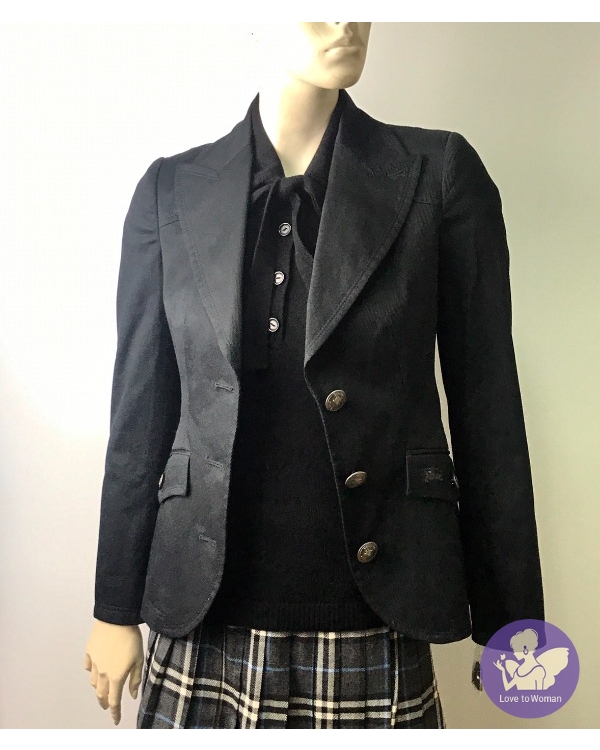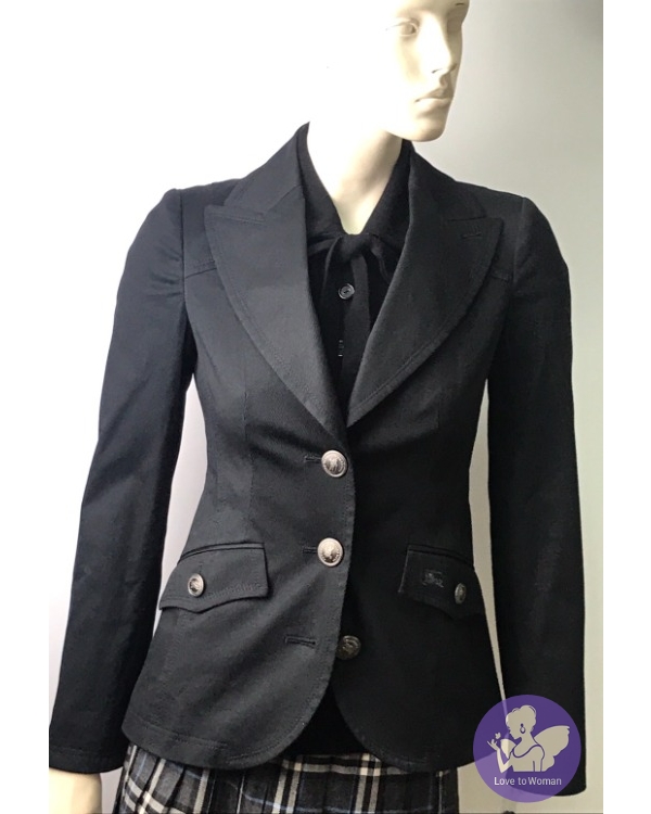 ~BURBERRY 未使用過 黑色戰馬扣西裝款長袖外套~36號
