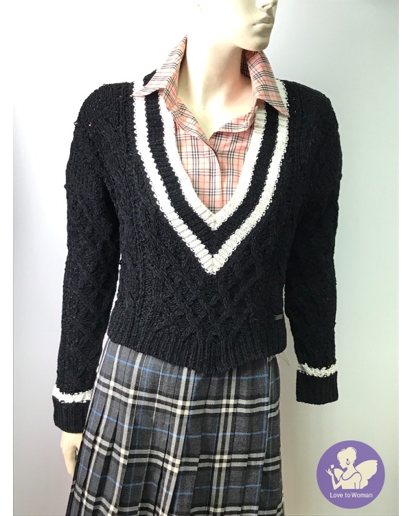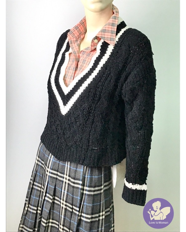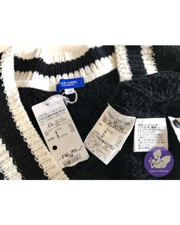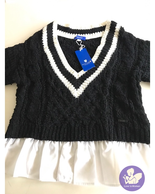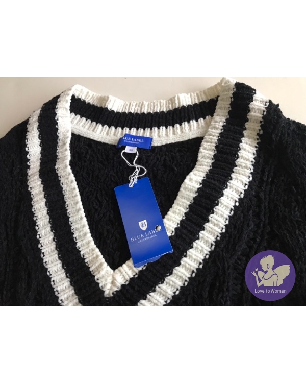 ~BURBERRY Blue Label 全新 黑色大深V背面活動白色下擺 毛衣