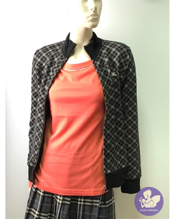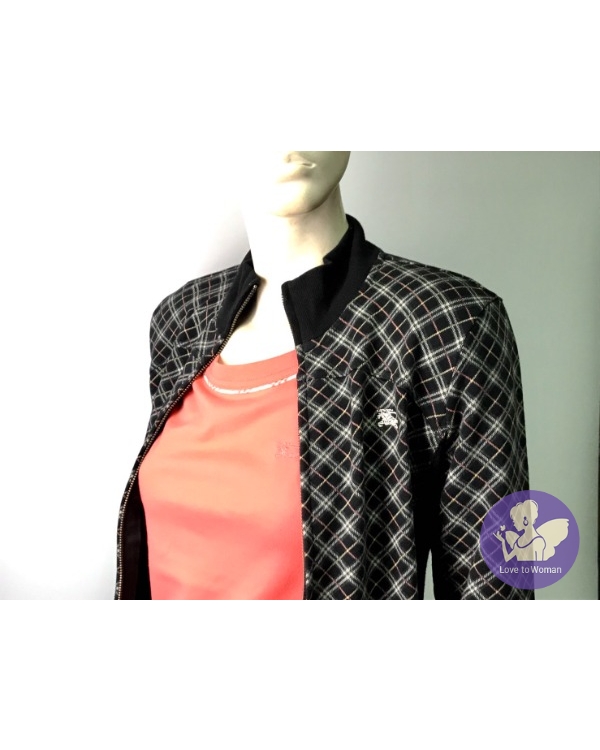 ~BURBERRY 日本製 極新極美 黑條紋格圖案長袖外套~38號