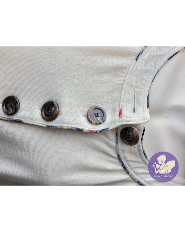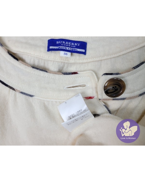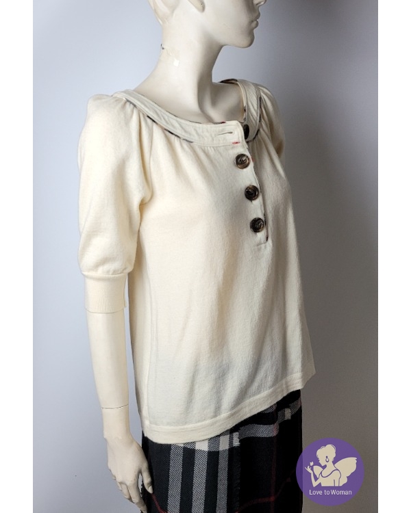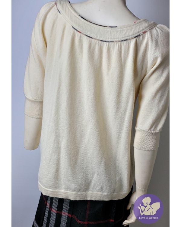 ~BURBERRY 日本製 珍珠色大扣五分袖寬版毛衣~38號