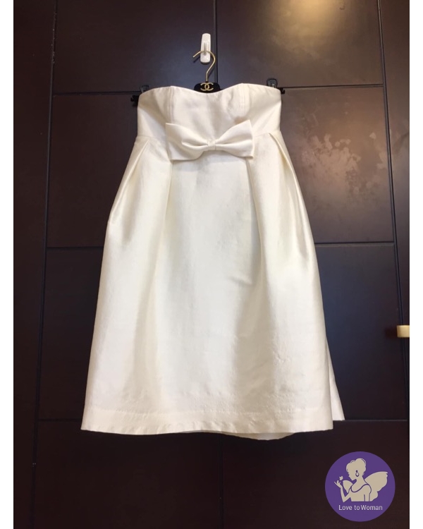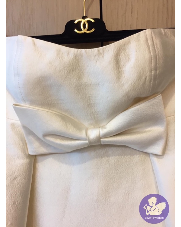竇騰璜&張李玉菁 米色緞面無肩蝴蝶結小洋裝 購於專櫃購價約$15000詳細未記 全新未穿吊牌在 尺寸36長80胸33後面鬆緊可拉至38 超級美的一件洋裝緞面質感好剪裁立體超顯瘦喔 買了沒穿到分享給喜歡的美女全新未穿但有些放置的痕跡料子有些起皺其實穿起來看不清楚介意勿喊