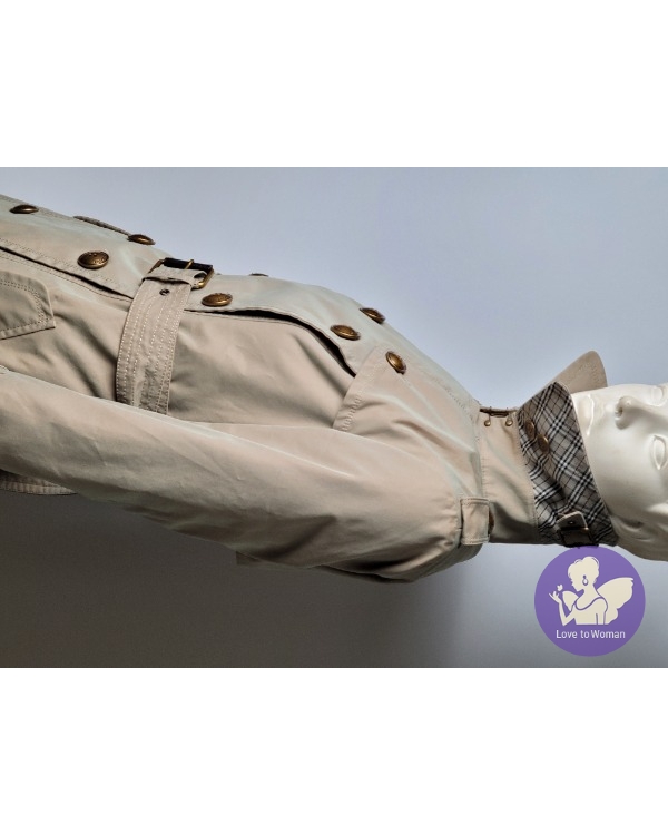 產品信息 ****寵愛平台認證賣家 A000071 預售價9888元. ~BURBERRY 未使用品 Burberry刻印大圓扣 駝色長袖中版風衣外套~38號 原購價約35000.穿起來很帥氣.扣子品牌LOGO 尺寸:肩寬40cm 袖長57cm 胸圍96cm 衣長68cm 極新極美.輕微收納痕.介意請勿下標(實物拍照請見各圖) 得標者請二日內匯款完成.150運費 售出不退