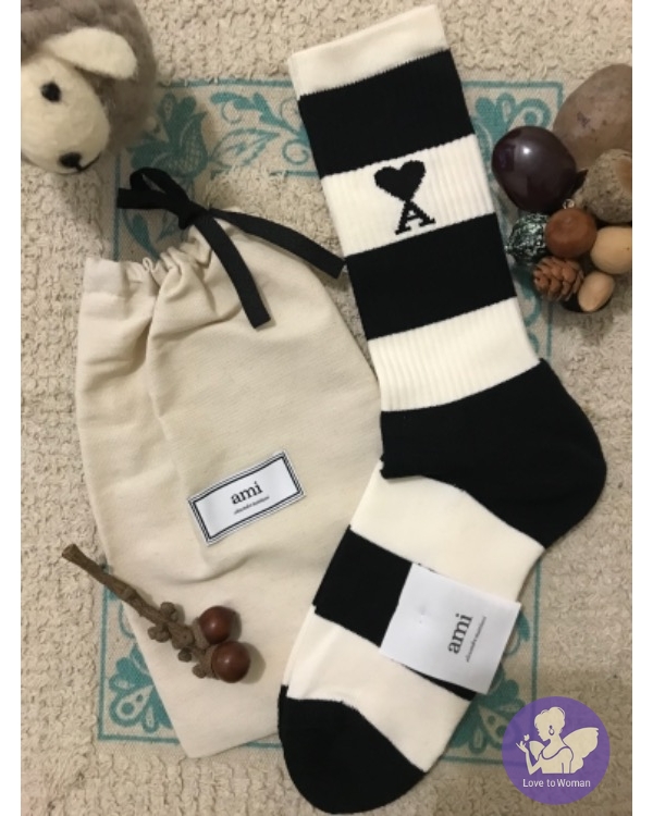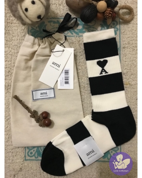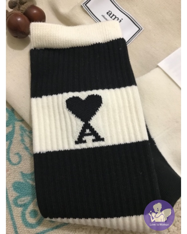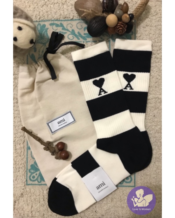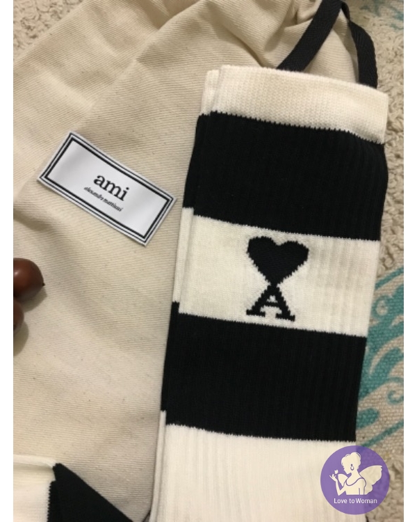 首頁 精品手錶 ❤️超級夯款 AMI Paris 愛心❤️A黑白條紋中筒襪