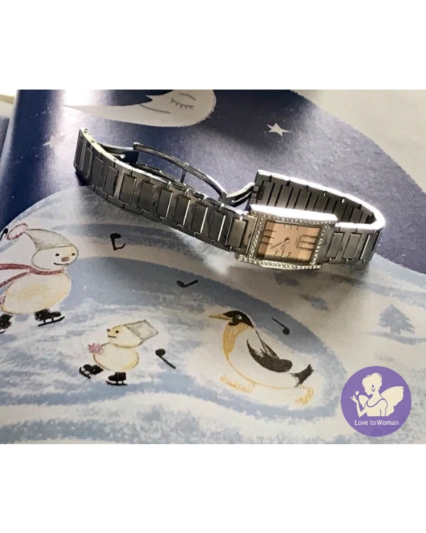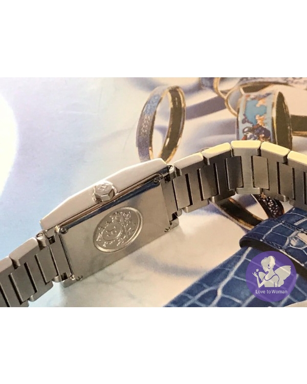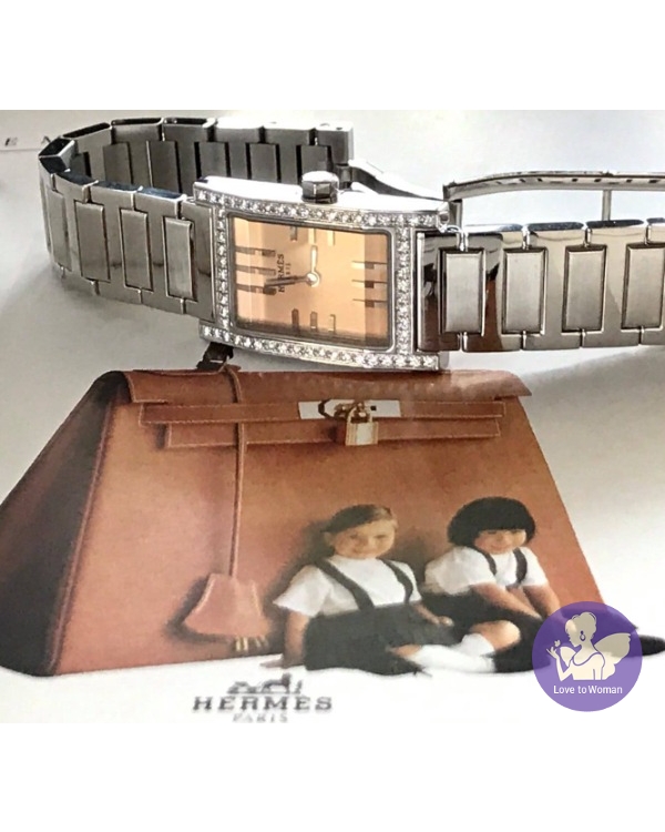 ~HERMES 附原廠盒 雙H整圈原鑲鑽石香檳金色面盤 石英錶