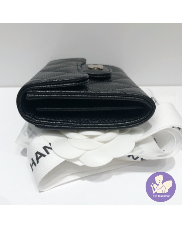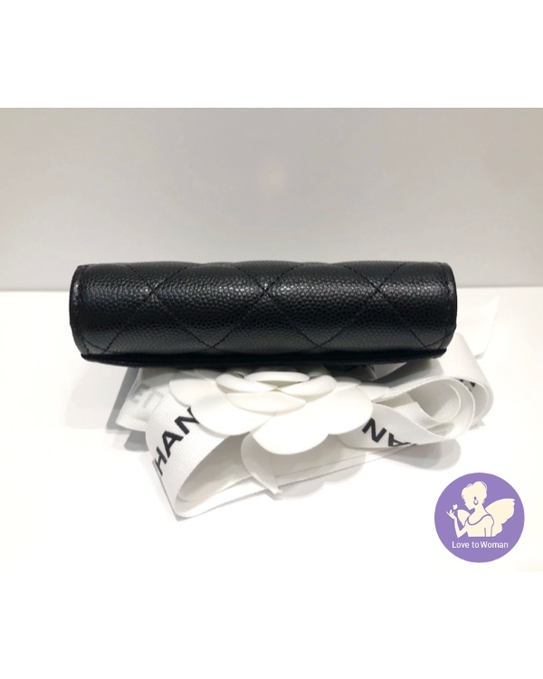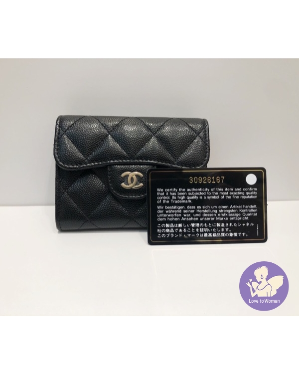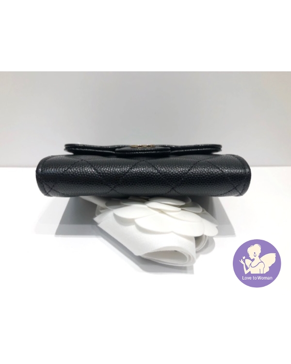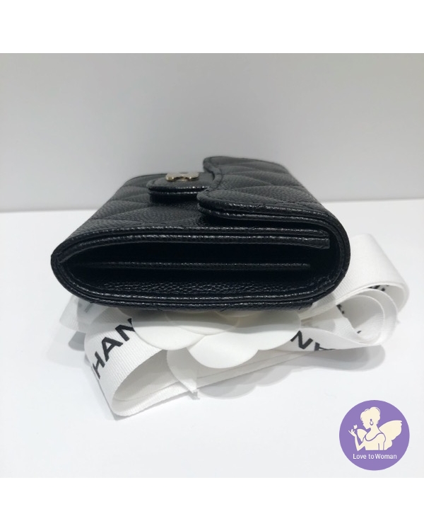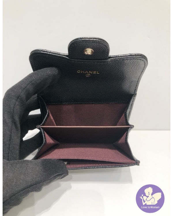 首頁 精品手錶 CHANEL 香奈兒 小香 金扣 經典 菱格紋 黑色荔枝 魚子醬壓紋 牛皮 雙層 卡包 釦式 零錢包 全新 ✨