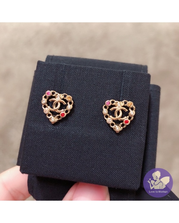 CHANEL 香奈兒 小香 2021新款 彩色 珍珠 水鑽 鏤空 愛心