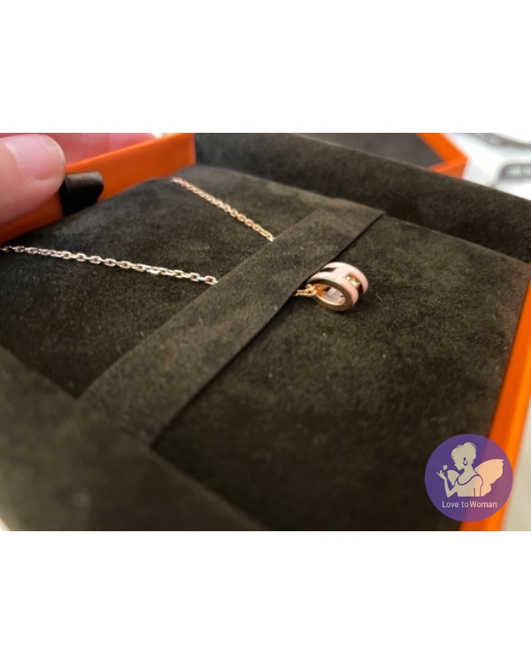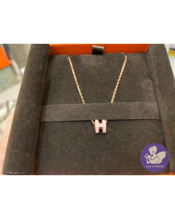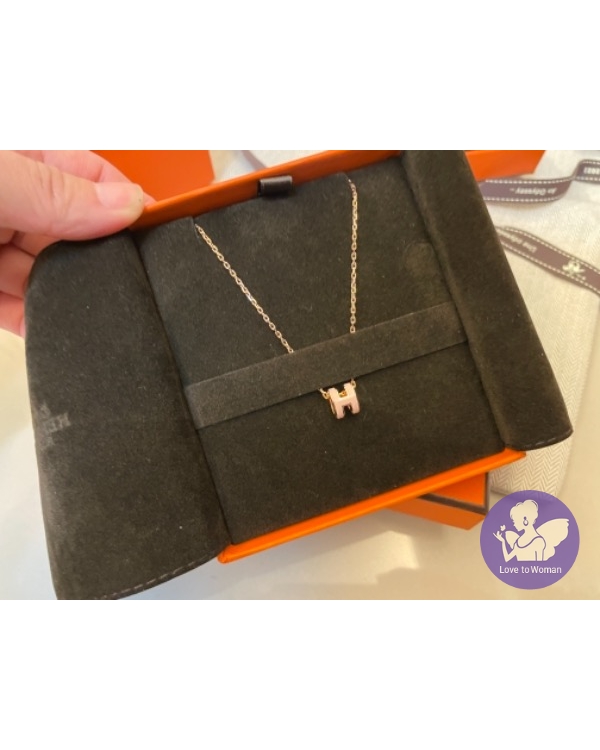 Hermes全新mini pop h玫瑰金淡粉項鍊