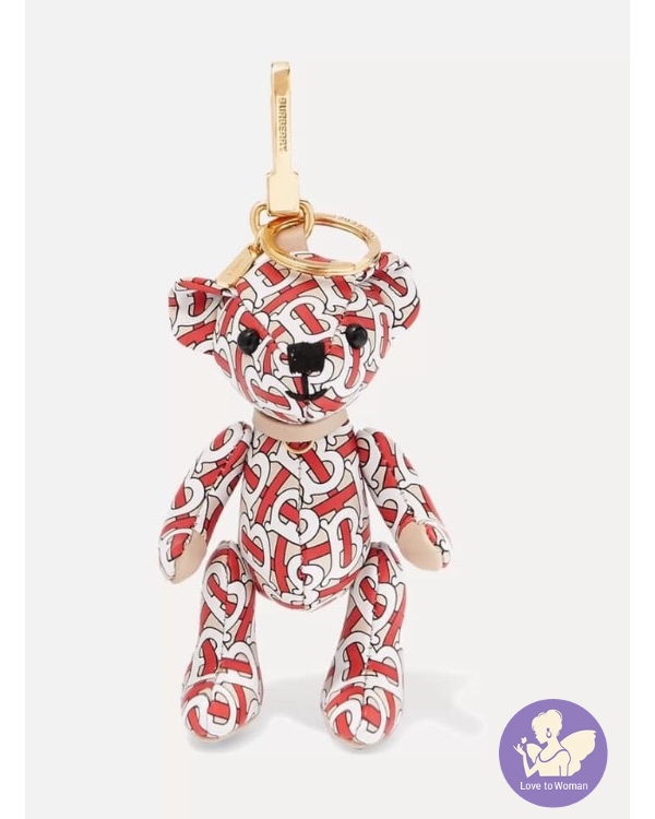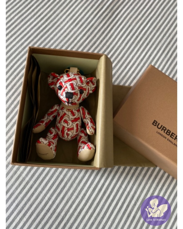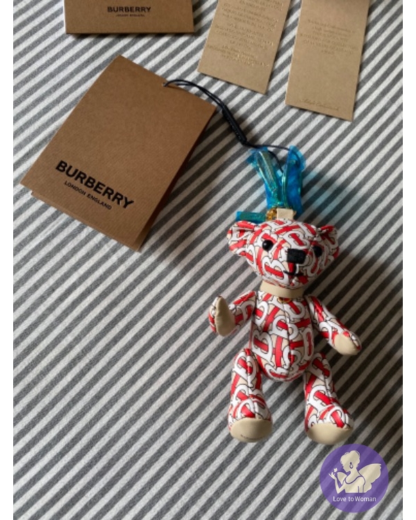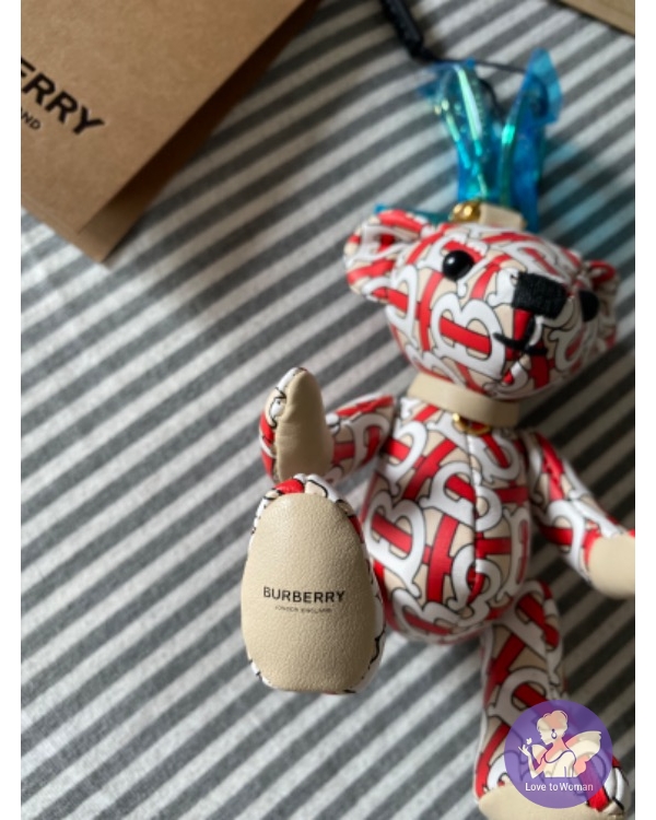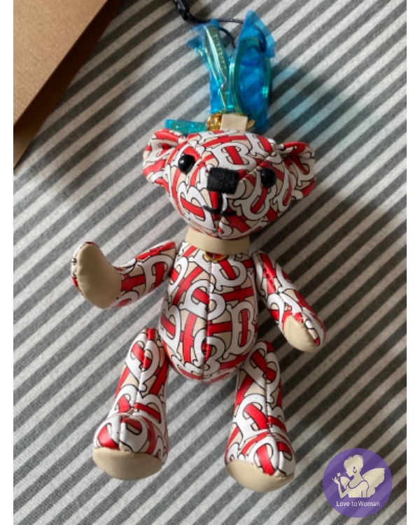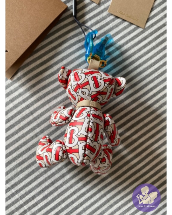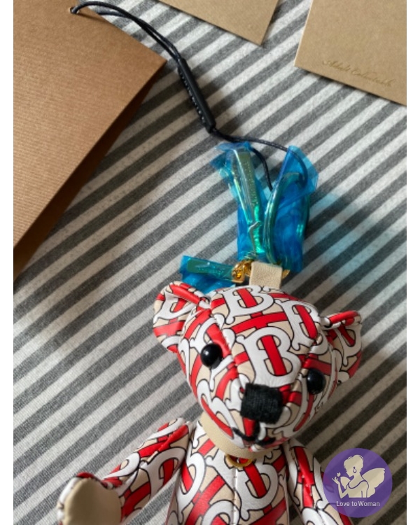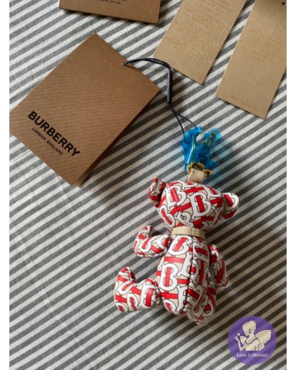 A001664 全新BURBERRY 紅色TB logo真皮熊熊吊飾