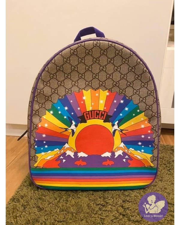 GUCCI 彩虹老花logo後背包 出清價12888元