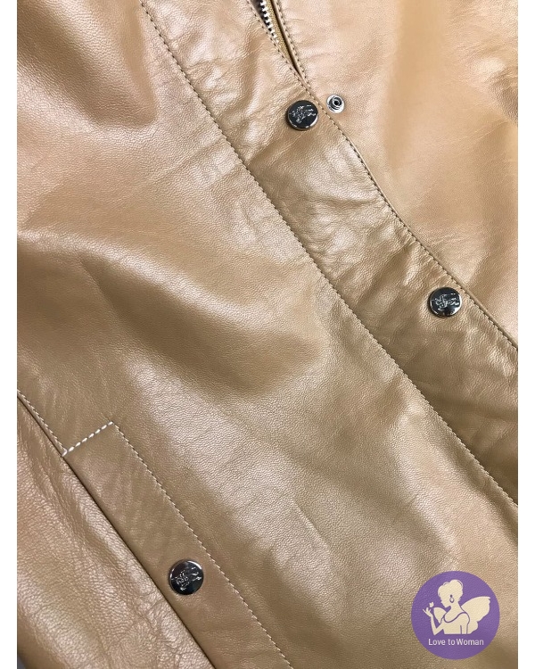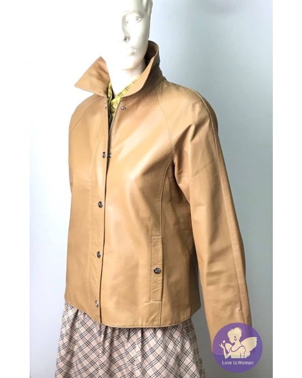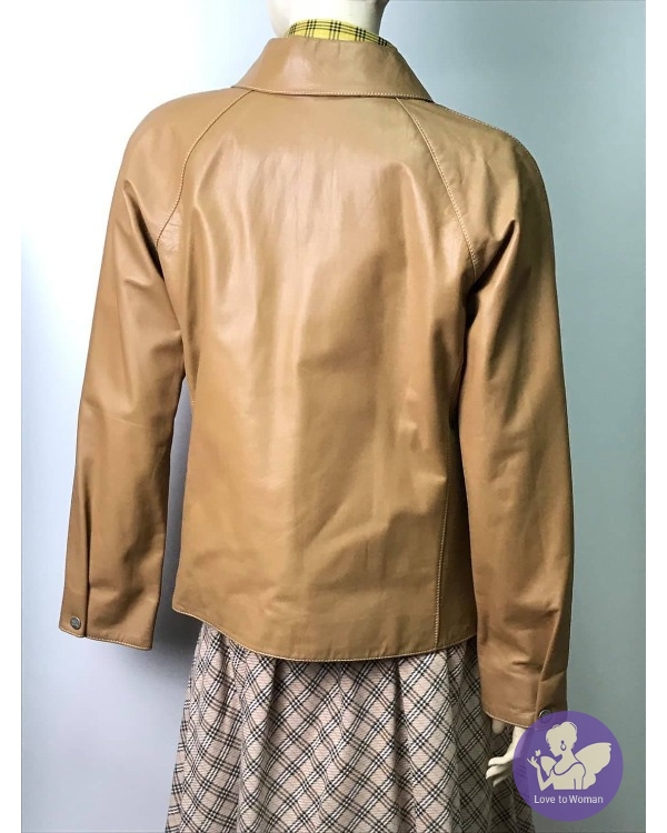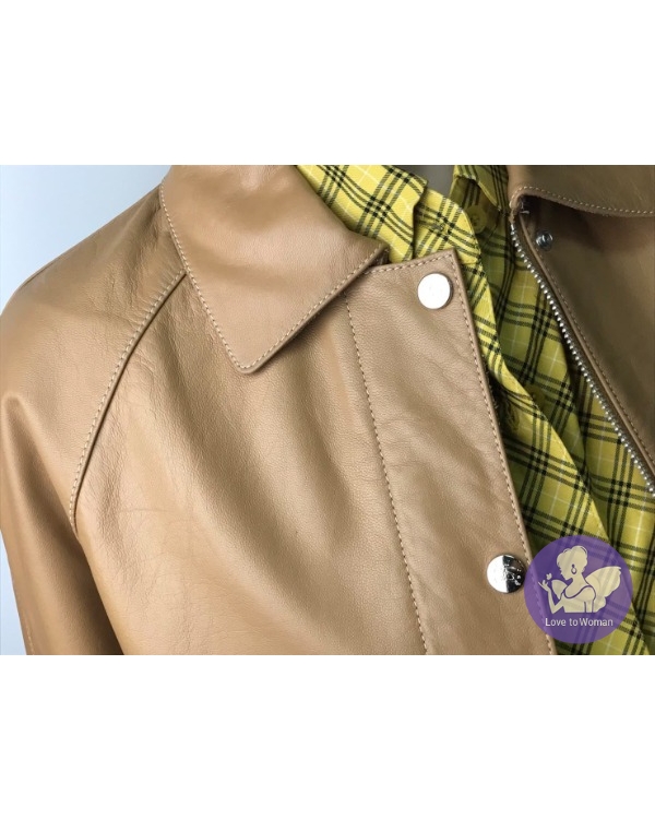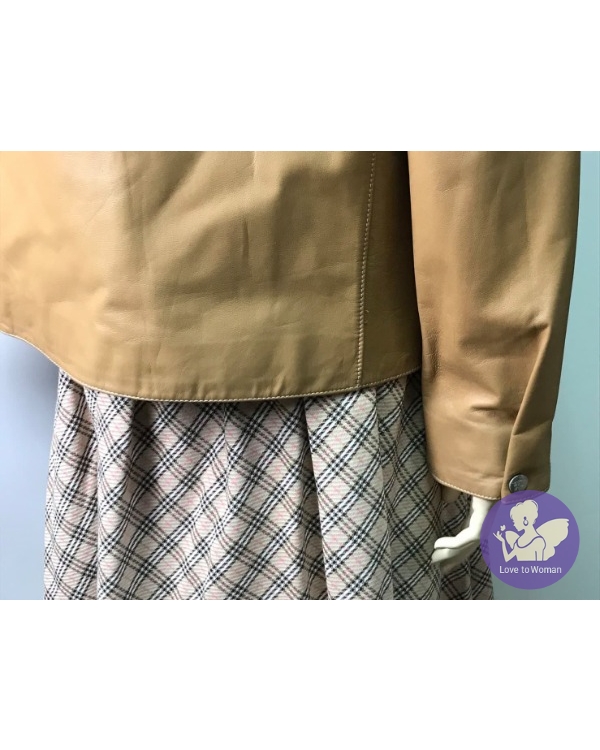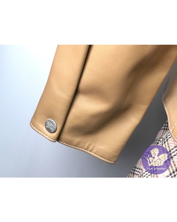~BURBERRY 極新極美 駝色釦子戰馬刻印小羊皮外套~38號