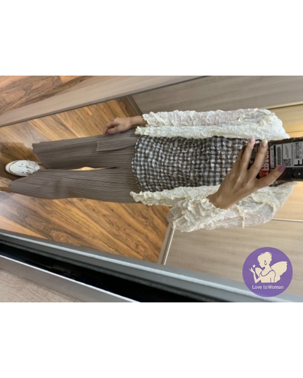 首頁 精品服飾 三宅一生Me issey miyake 碎褶短袖格子上衣