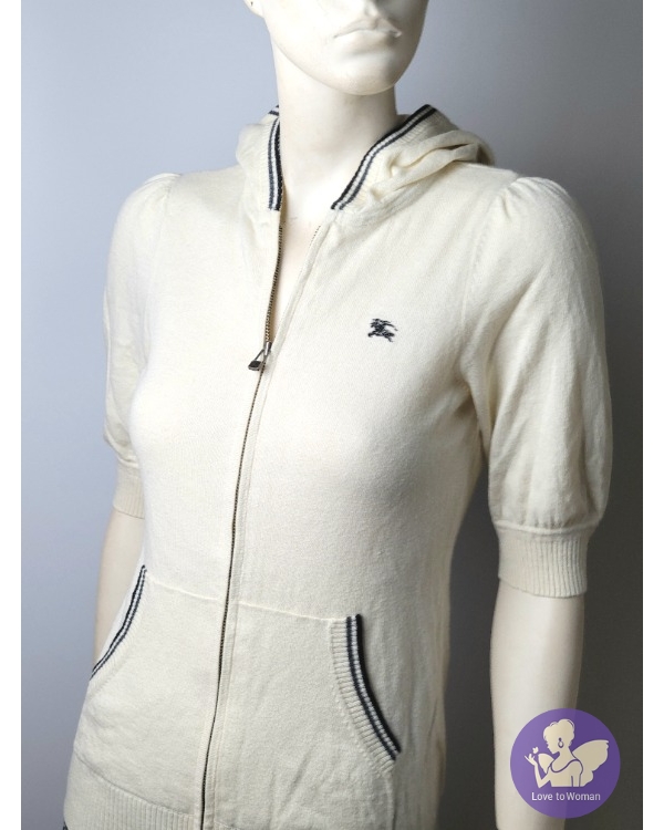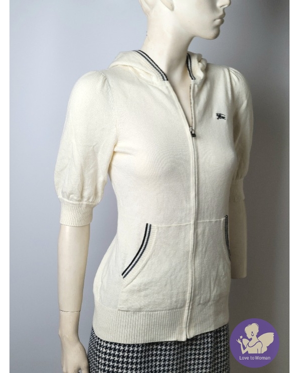 產品信息 ****寵愛賣家**認證A000071 預售價2888元 ~BURBERRY 背面大戰馬 棉毛材質 珍珠色5分袖戰馬釦頭帽子外套上衣~38號 原購價8000.胸前扣子戰馬logo.雖然短袖棉毛材質很保暖 尺寸:肩寬38cm 袖長30cm 胸圍90cm 衣長58cm 輕微接觸使用痕.介意請勿下標(實物拍照請見各圖) 裸件.出貨會包好 得標者請二日內匯款完成.含運費 售出不退