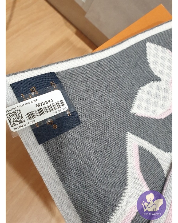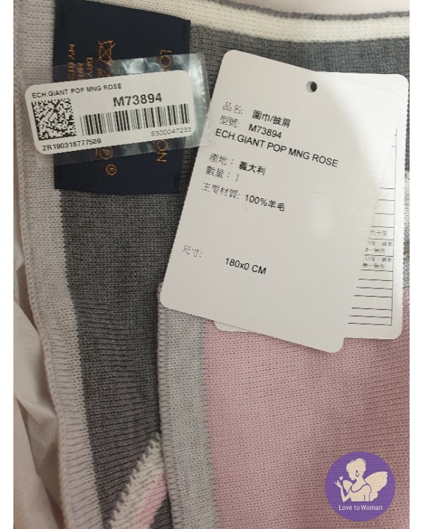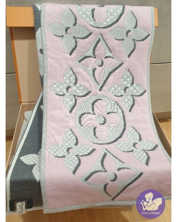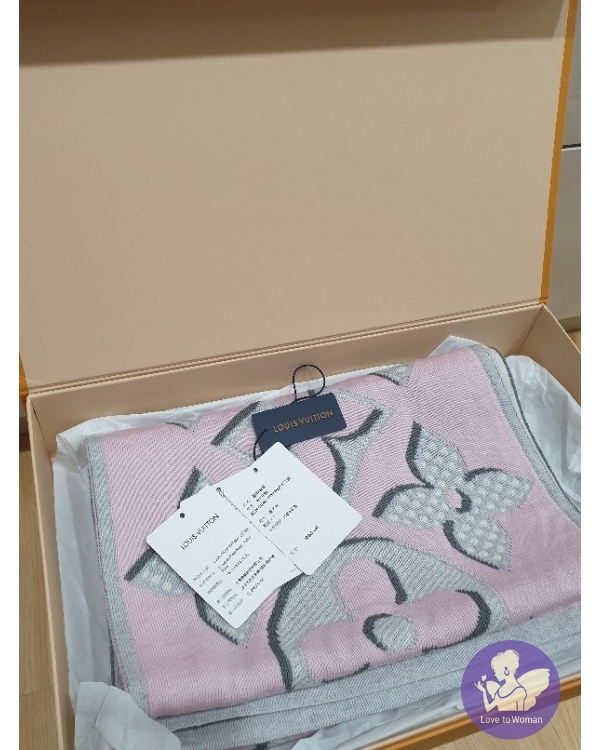 LV 粉色/灰色 雙面 180cm 100%羊毛圍巾