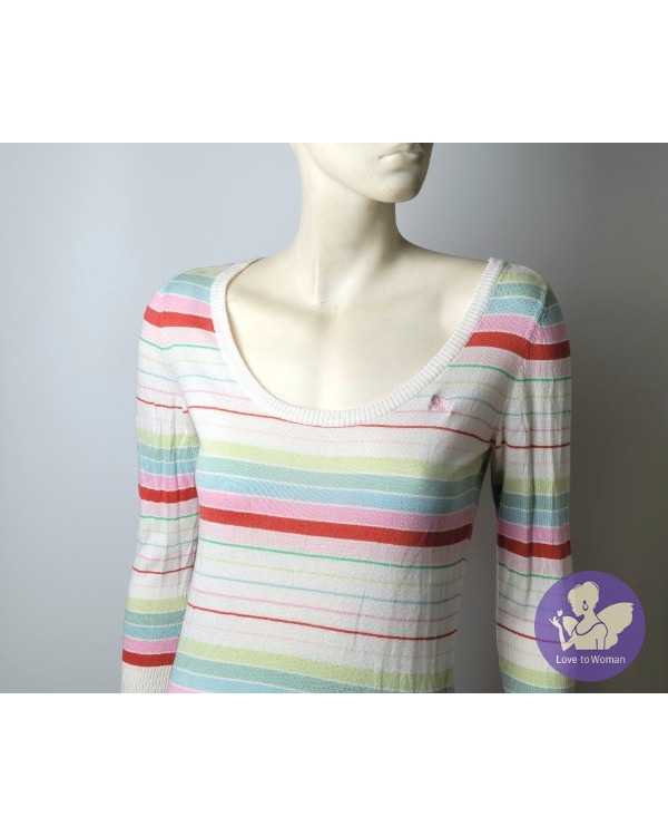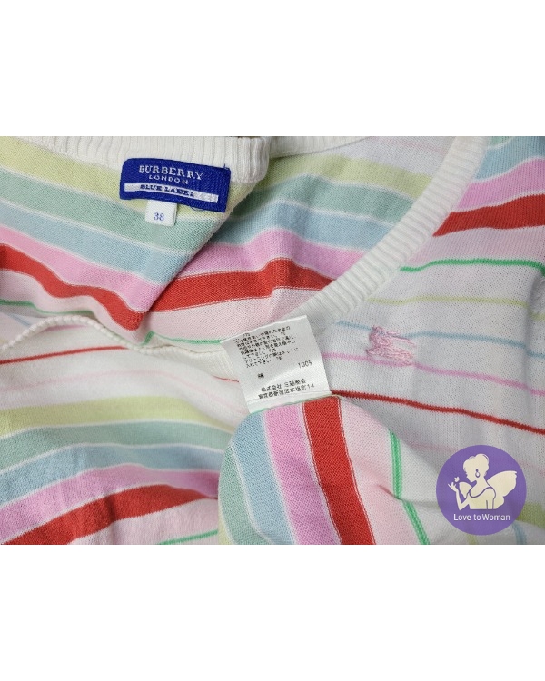 ~BURBERRY 低胸圓領條紋彩色七分袖上衣~38號