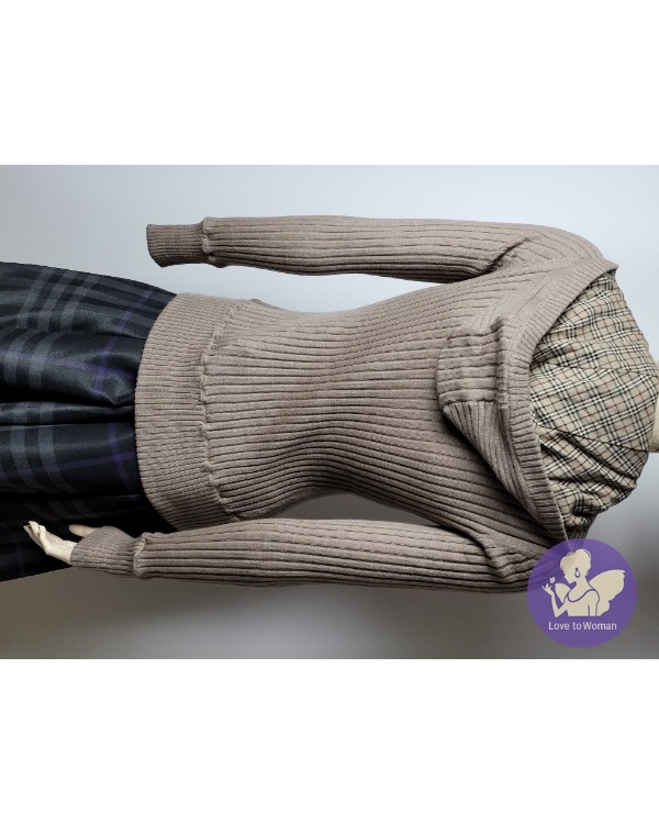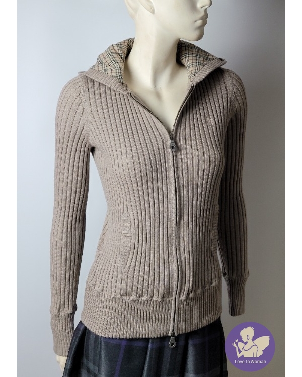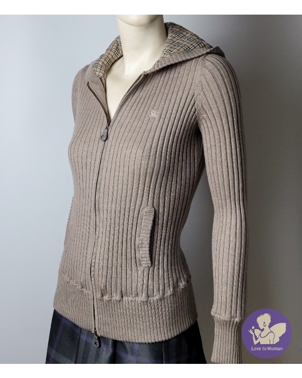~BURBERRY 駝色翻袖帽子內裡經典格紋布毛料外套~38號