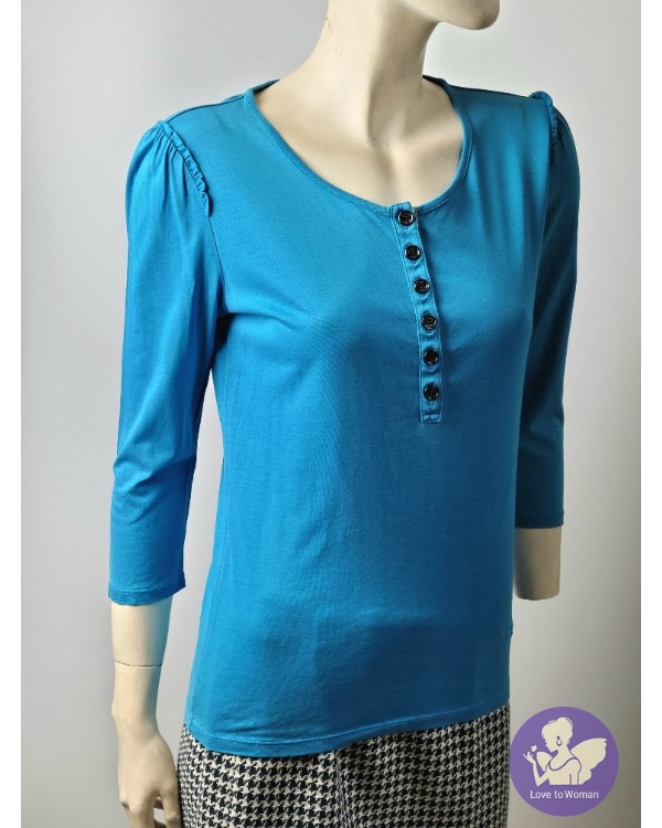 ~BURBERRY 日本製 土耳其藍 釦子品牌BURBERRY刻印 七分袖上衣
