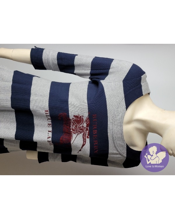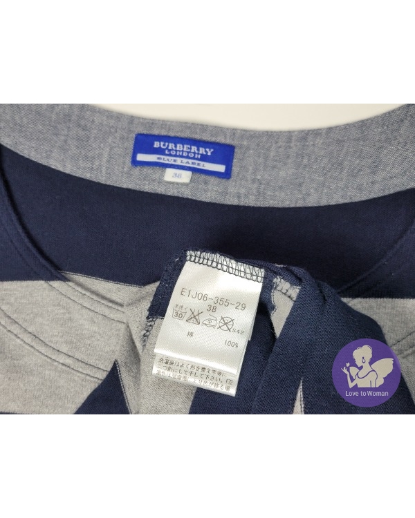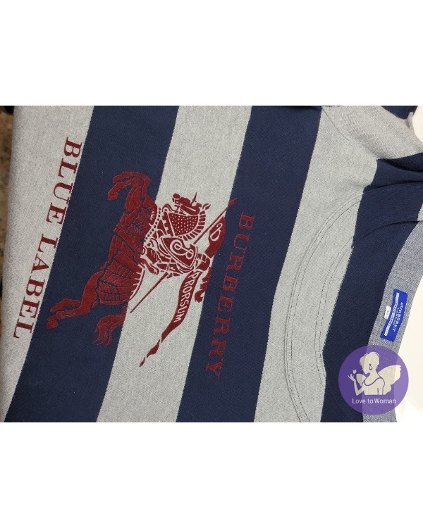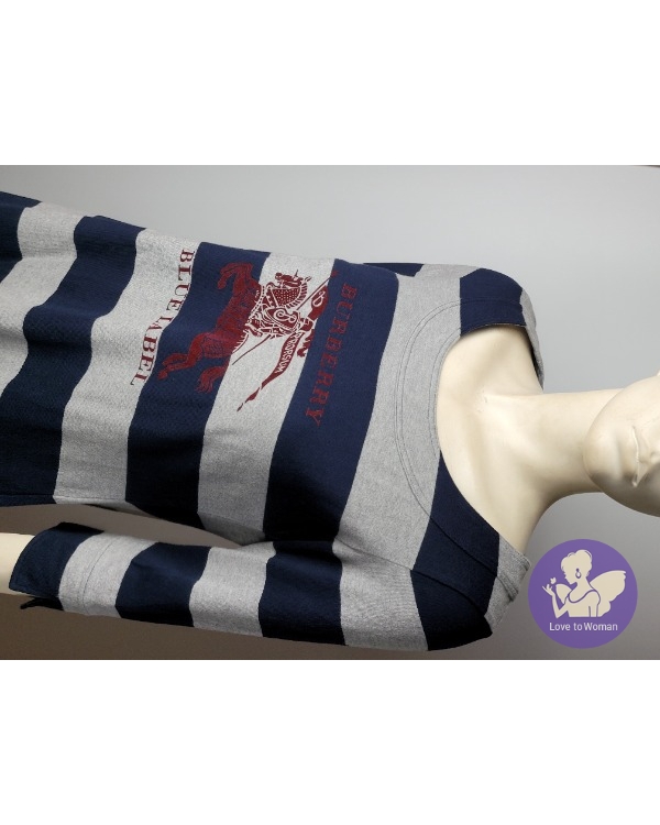 ~BURBERRY 紅色大戰馬 灰藍條紋寬版長上衣洋裝~38號