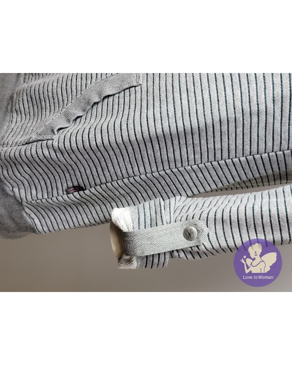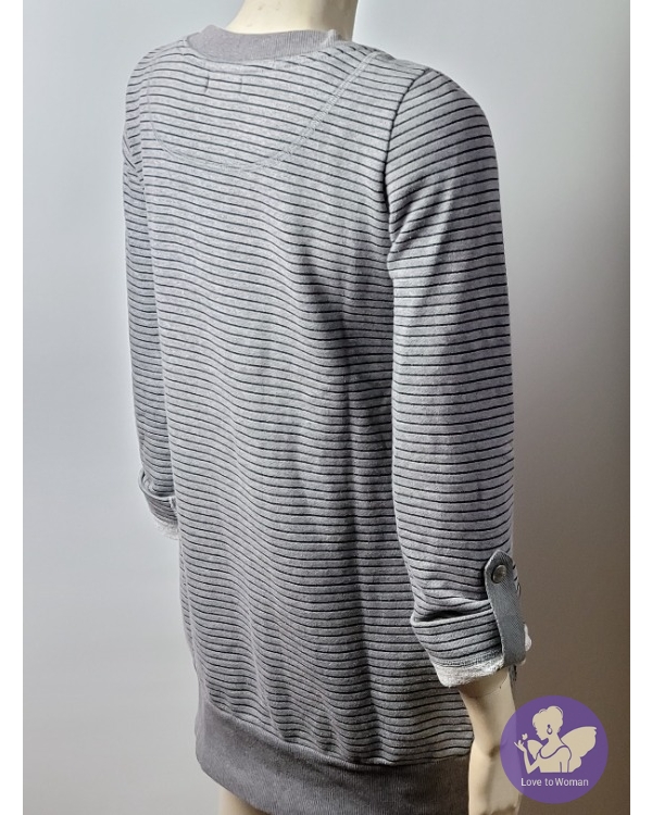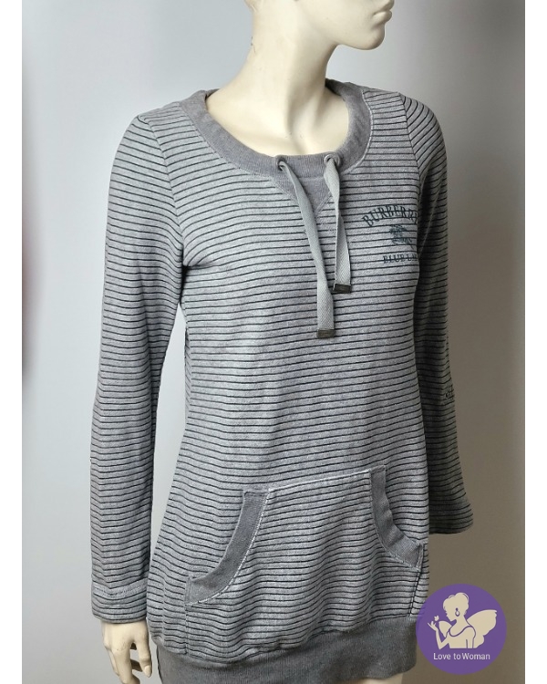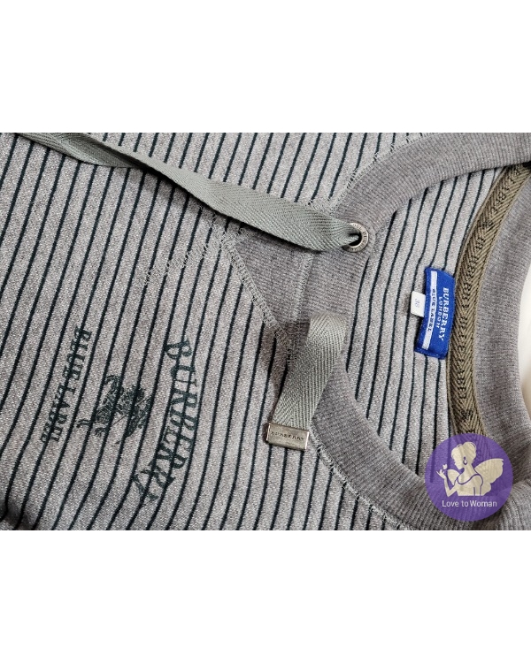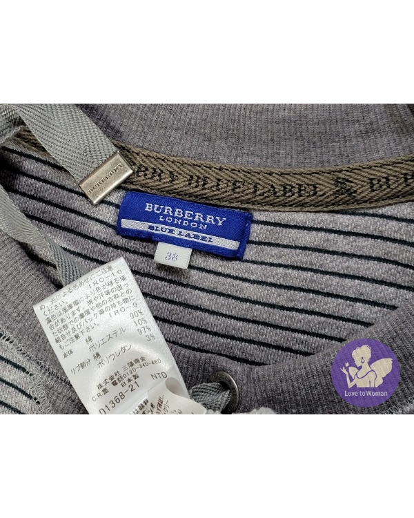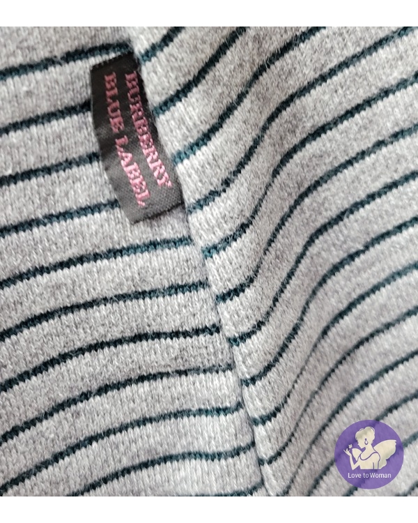 ~BURBERRY 灰色綠橫條胸前BURBERRY長袖長版上衣~38號
