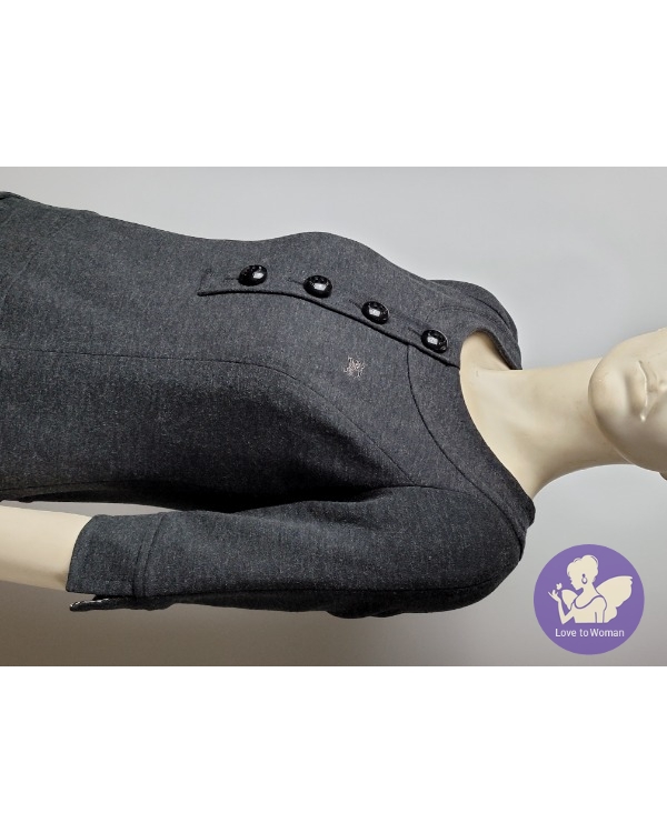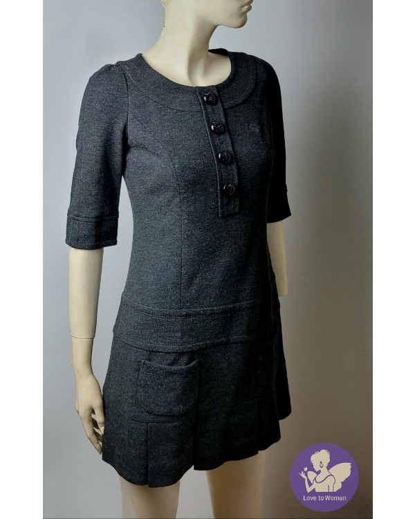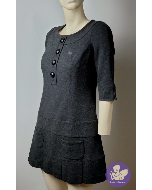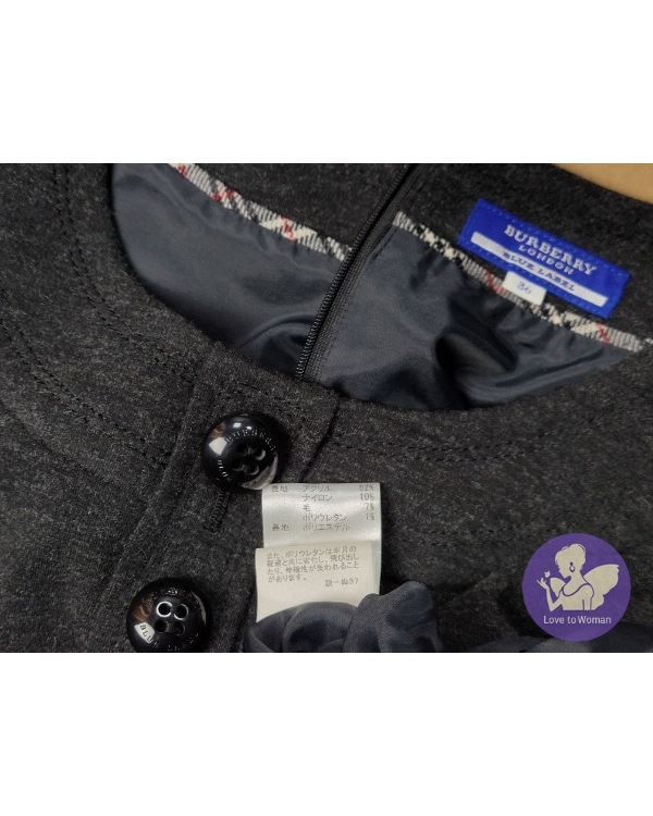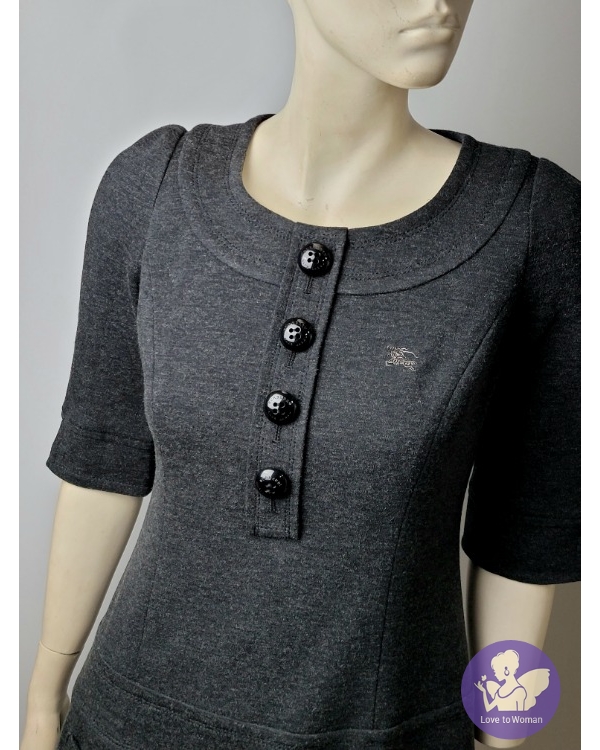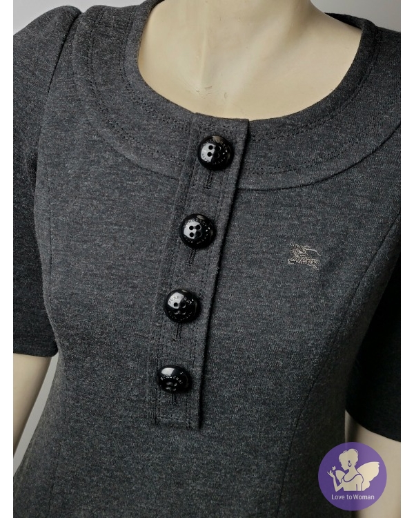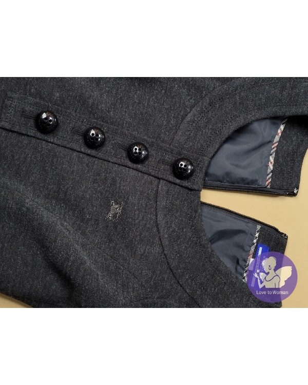 ~BURBERRY 極美 胸前BURBERRY大扣子黑色短袖洋裝~36號