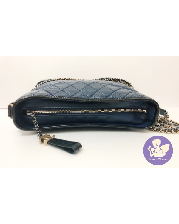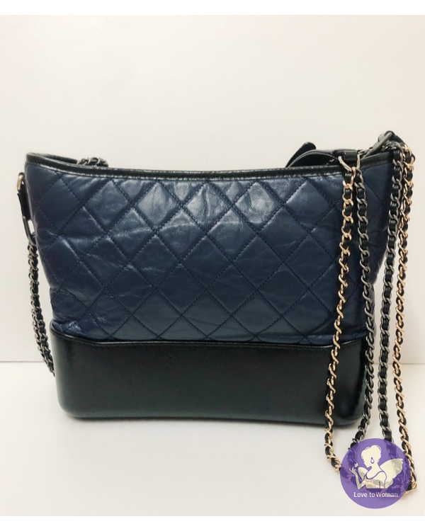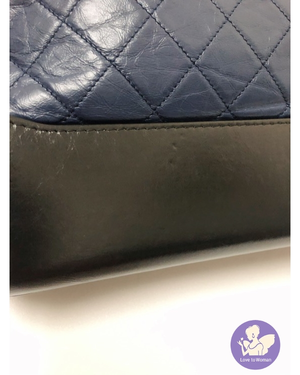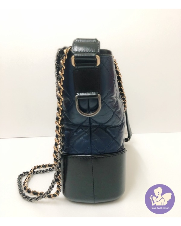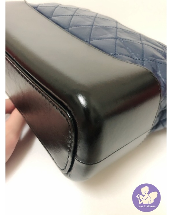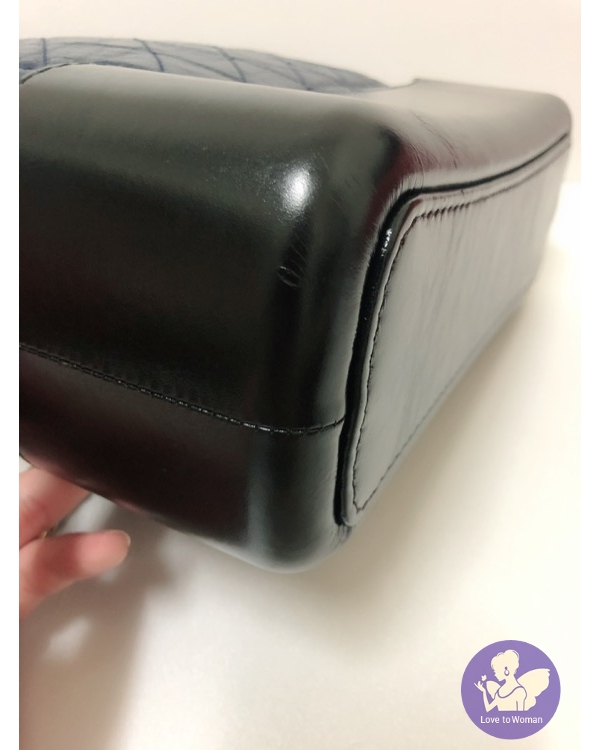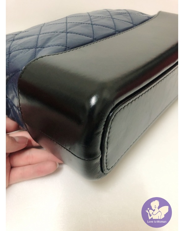 CHANEL 香奈兒 小香 經典 帥氣 Gabrielle 深藍復古牛皮 拼黑色 中款 斜背 肩背 後背 流浪包