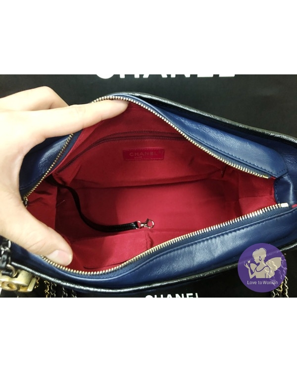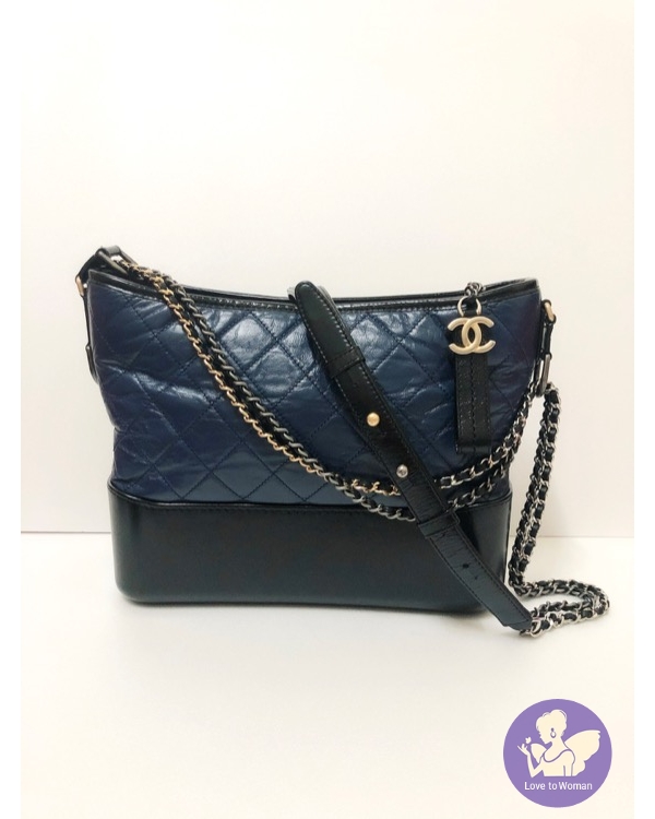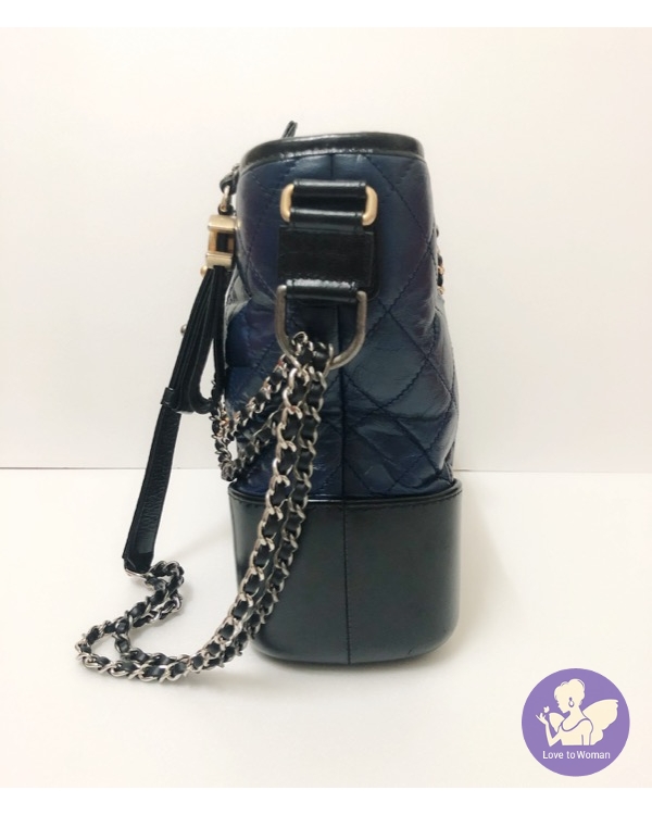 首頁 精品包包 CHANEL 香奈兒 小香 經典 帥氣 Gabrielle 深藍復古牛皮 拼黑色 中款 斜背 肩背 後背 流浪包