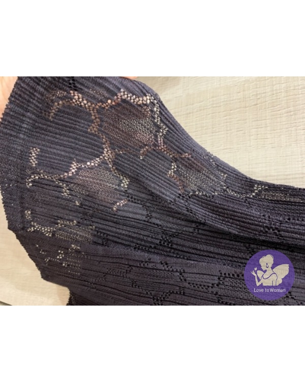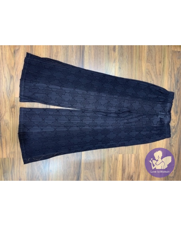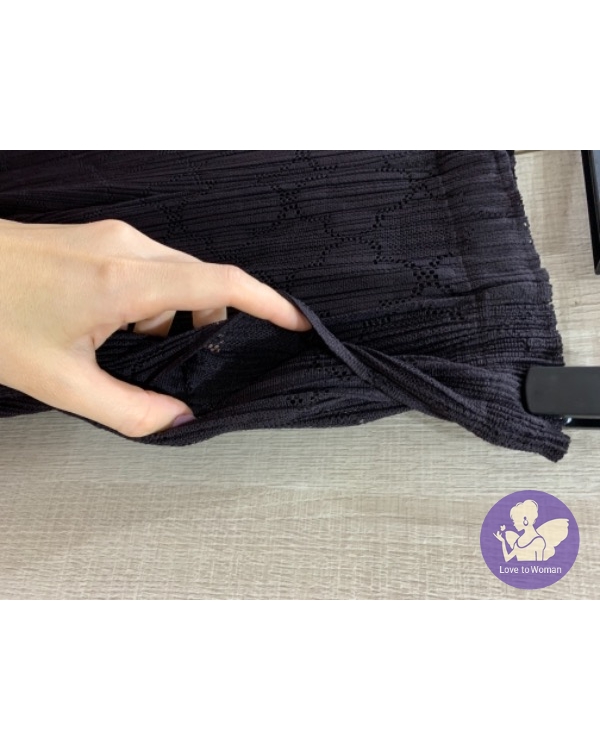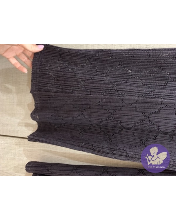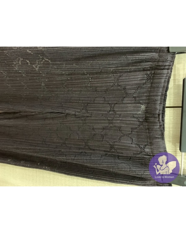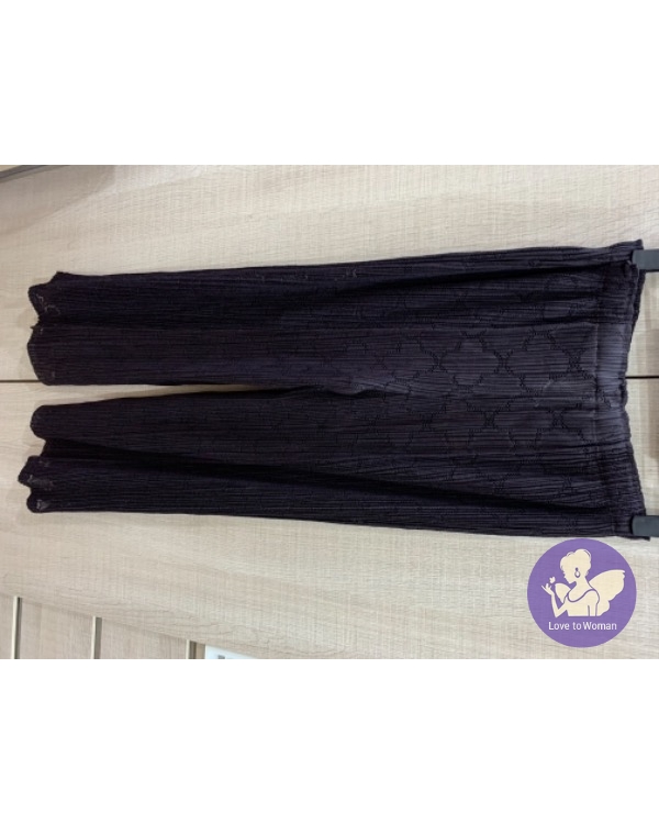 三宅一生Pleats please深咖啡鏤空蕾絲款寬褲