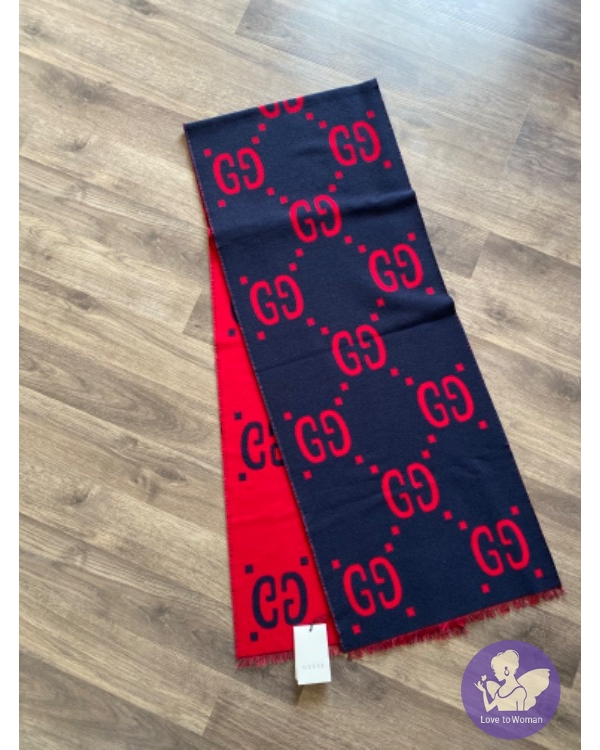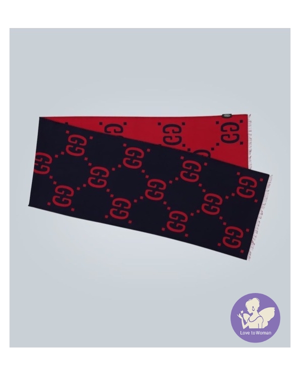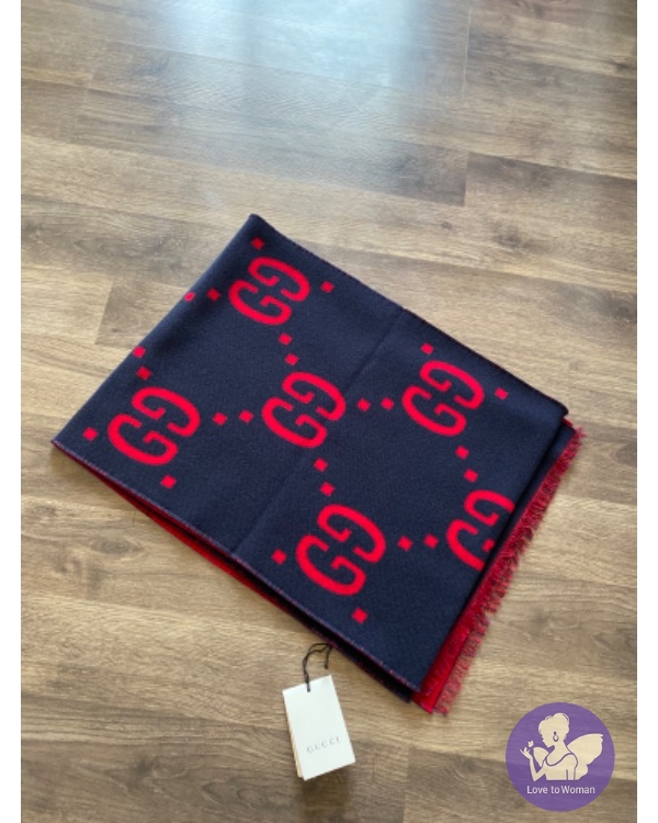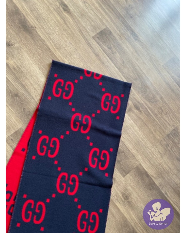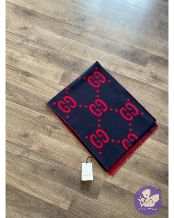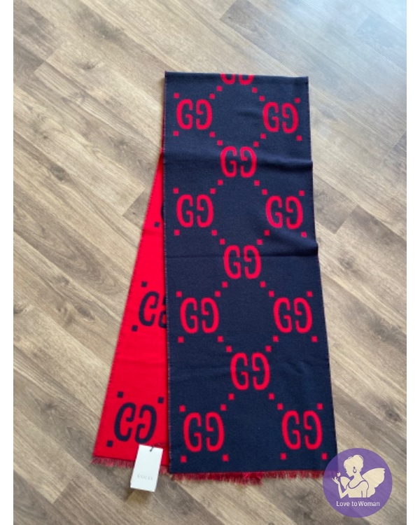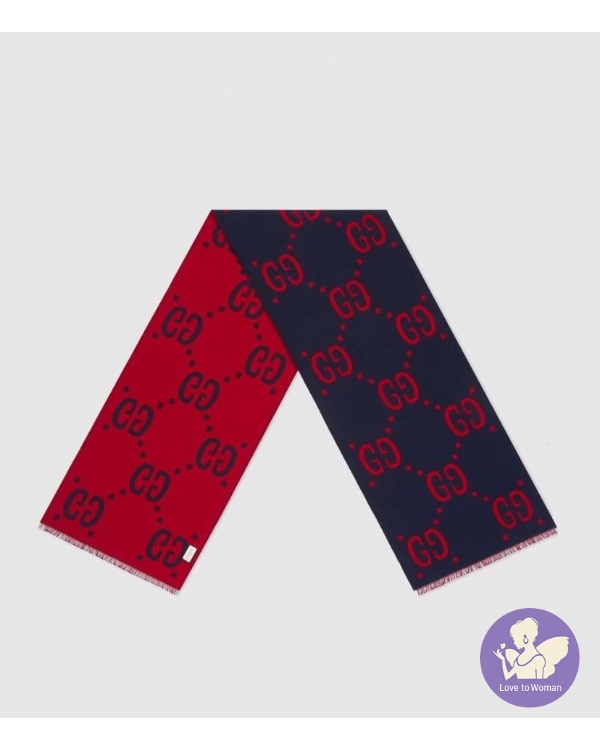 首頁 精品手錶 ​A001664 全新GUCCI GG logo 藍紅配色雙面羊毛絲質圍巾