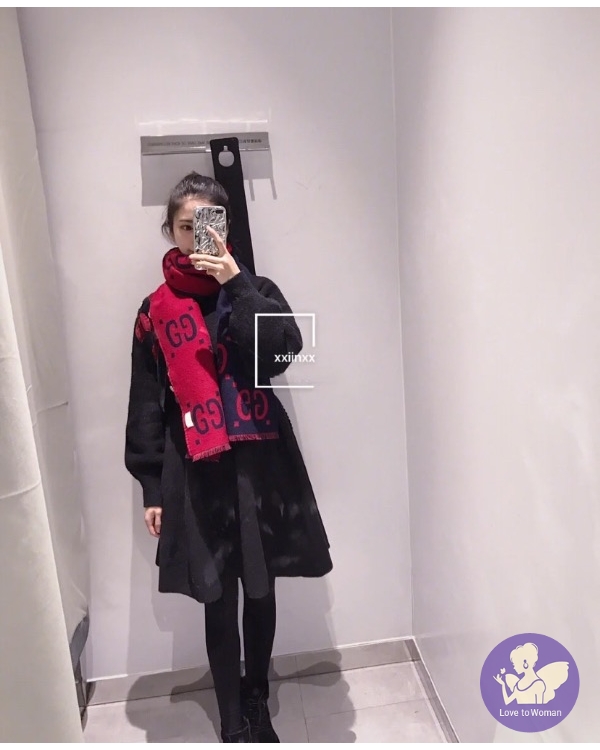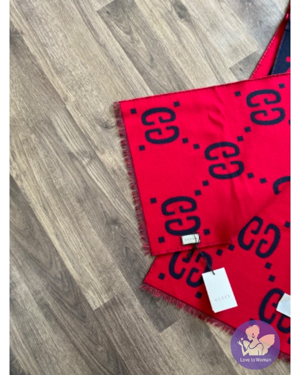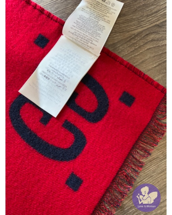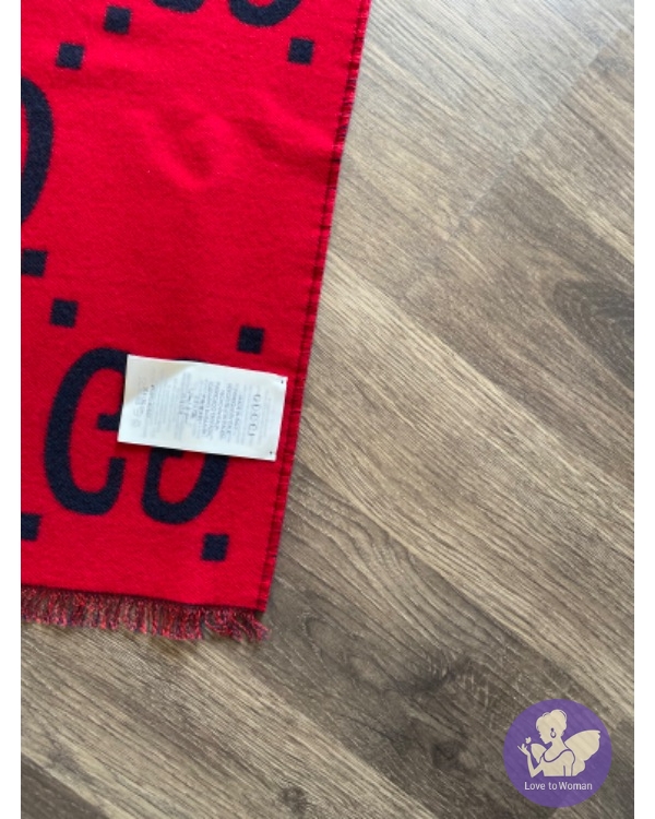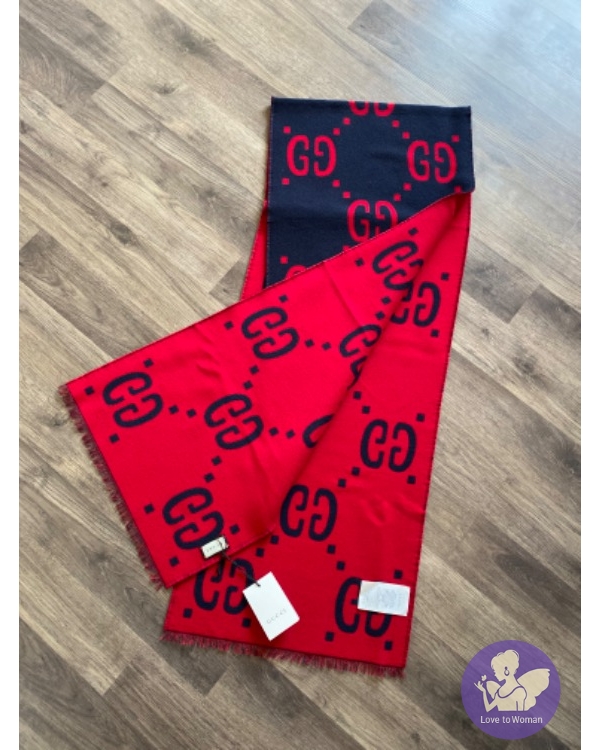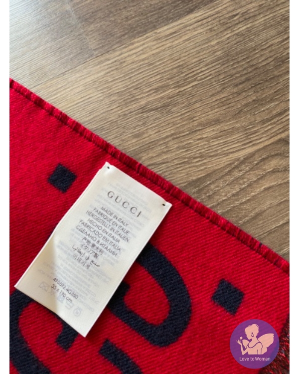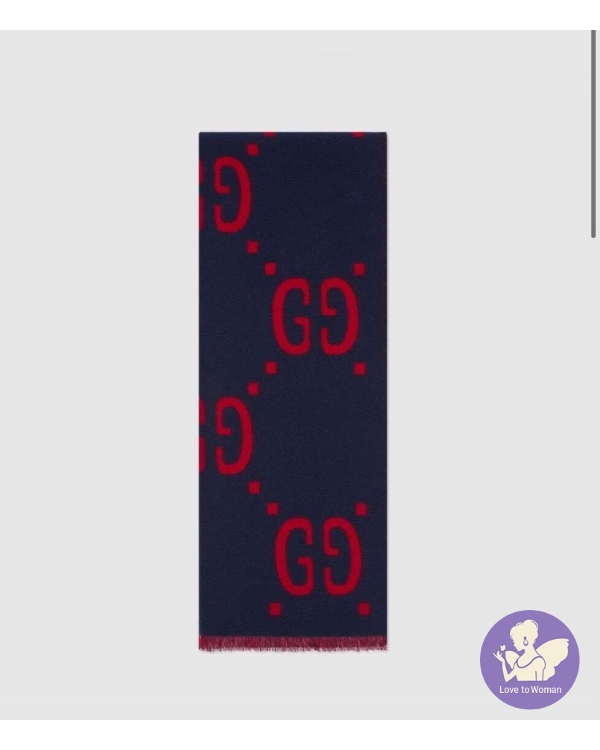 首頁 精品手錶 ​A001664 全新GUCCI GG logo 藍紅配色雙面羊毛絲質圍巾