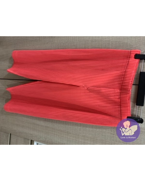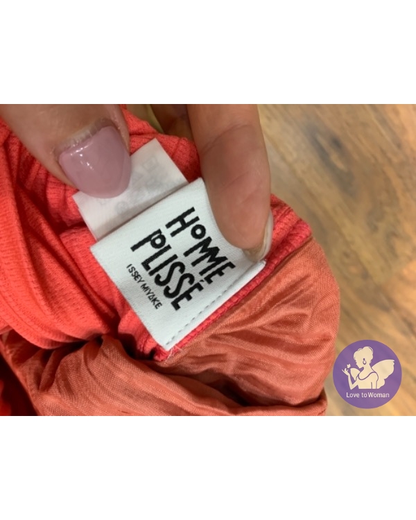 三宅一生Homme plisse 亮珊瑚粉色多彩皺褶七分褲