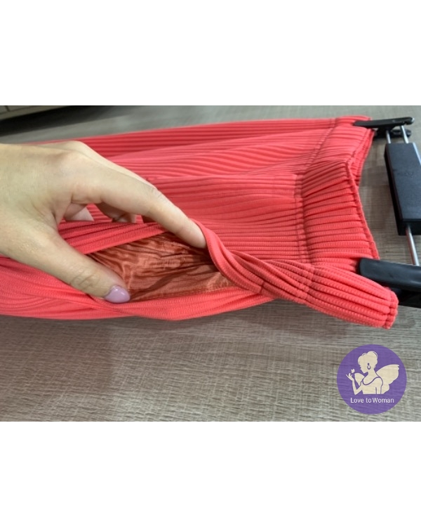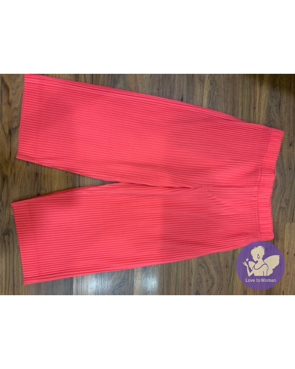 首頁 精品服飾 三宅一生Homme plisse 亮珊瑚粉色多彩皺褶七分褲