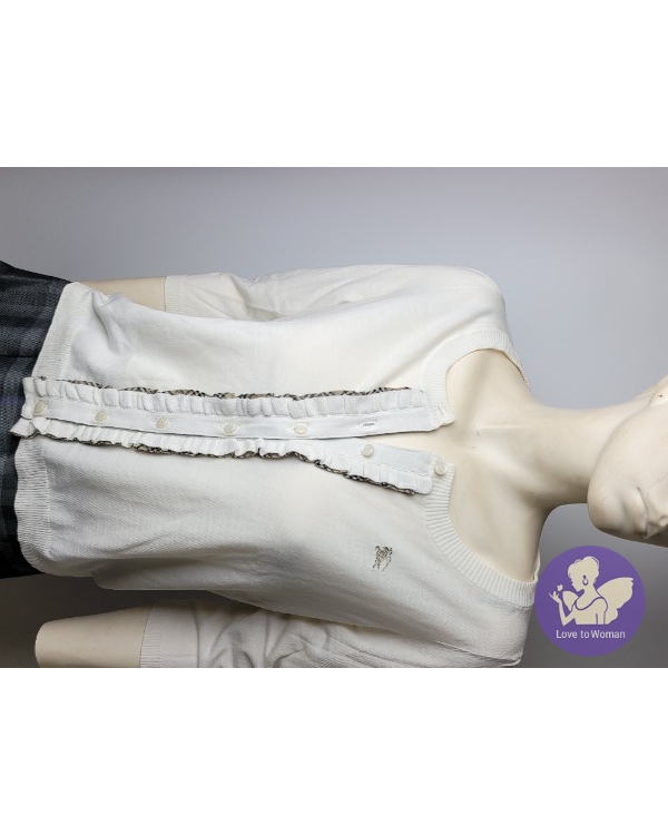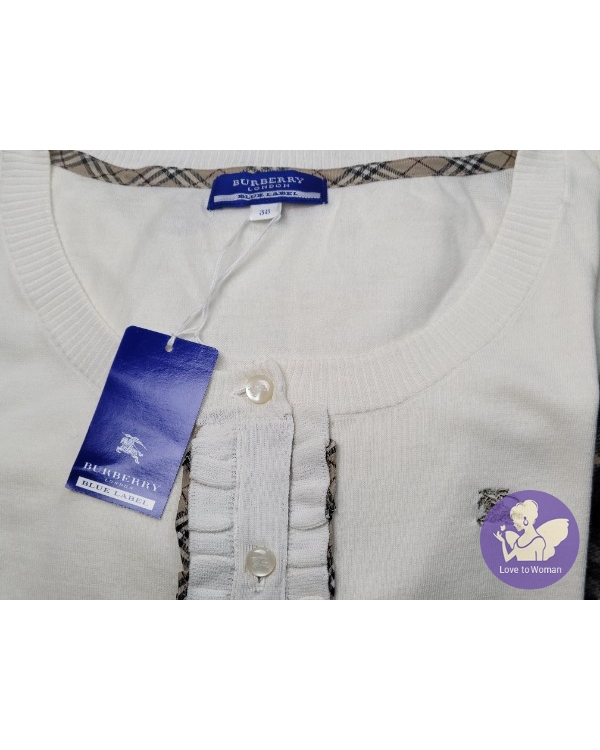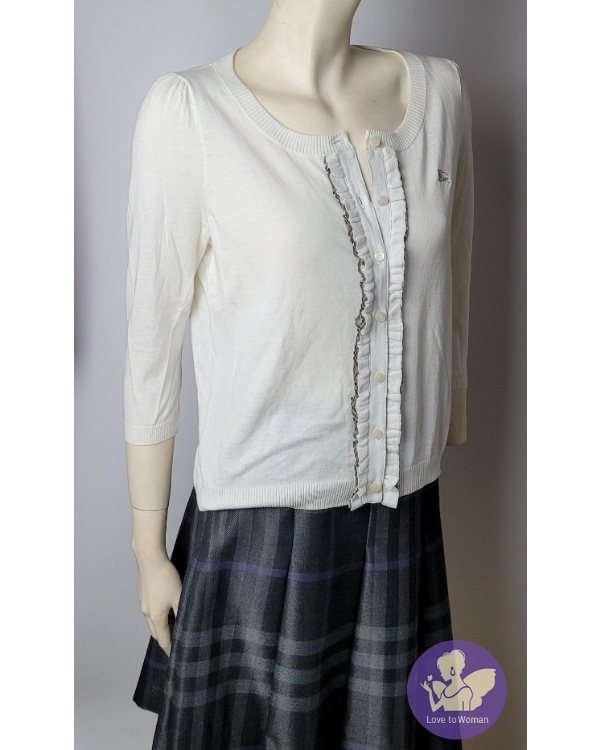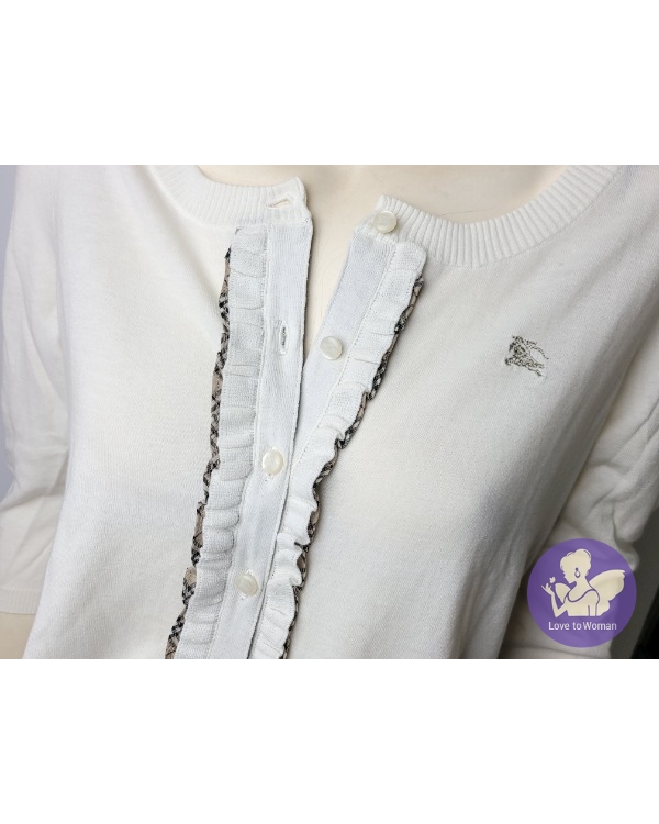 產品信息 *****寵愛賣家認證A000071 預售價2988元 ~BURBERRY 全新(有吊牌) 雙層經典格紋荷葉邊 前戰馬釦子白色外套~38號 原購價10000.前釦雙層荷葉設計同色系格紋.秀氣典雅 尺寸:肩寬38cm 胸圍106cm 袖長42cm 衣長53cm 極新極美.未使用過(實物拍照請見各圖) 裸件.出貨會包好 得標者請二日內匯款完成.150運費 售出不退