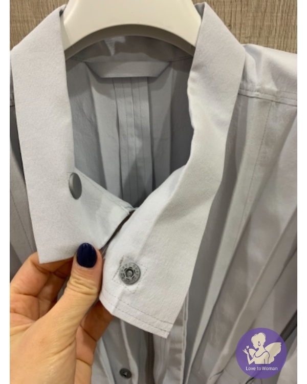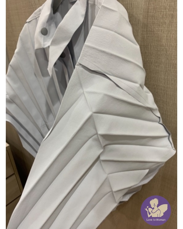 三宅一生Homme plisse 淺灰白峽谷立領開襟拉鍊外套