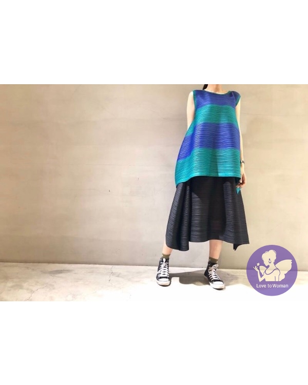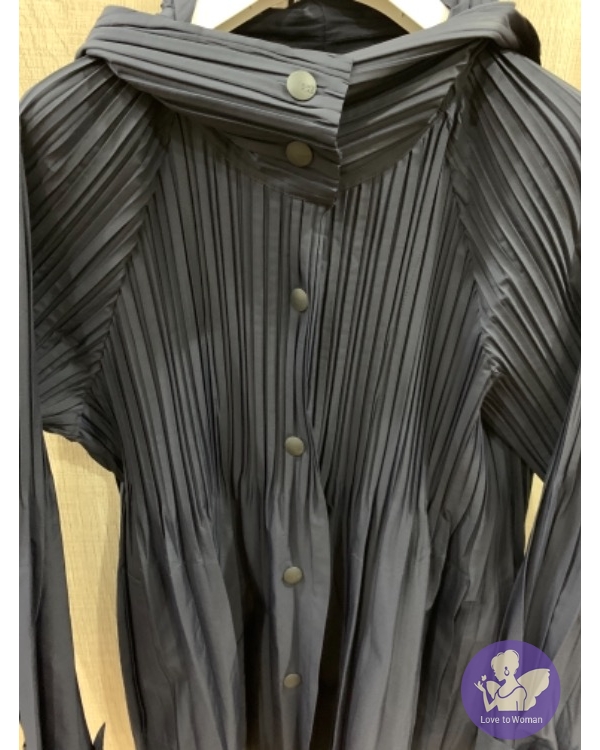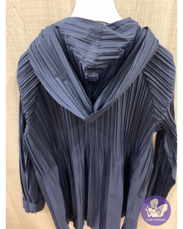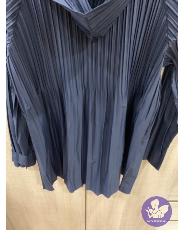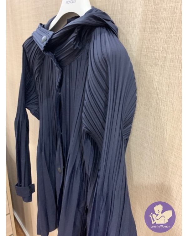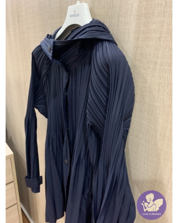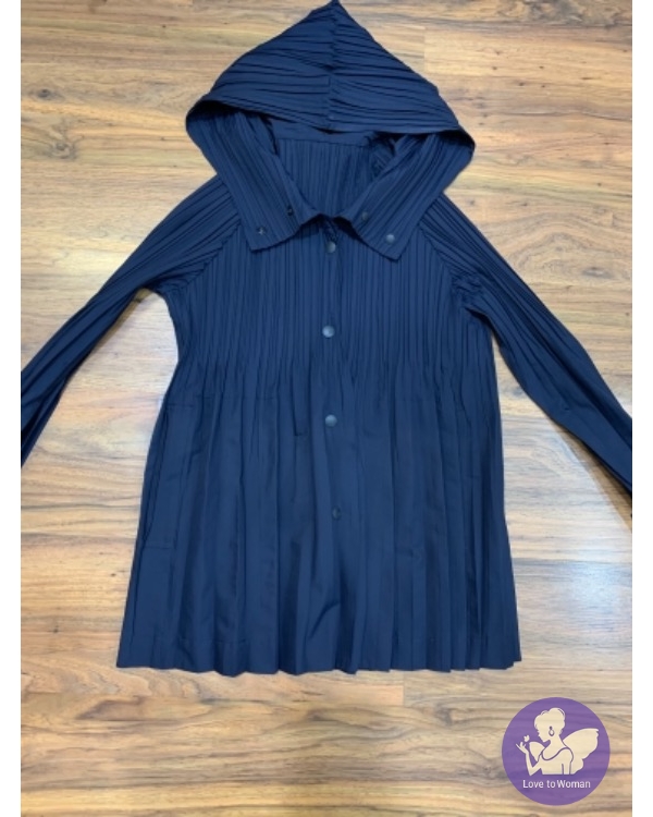 三宅一生Pleats please 海軍藍色壓褶連帽外套