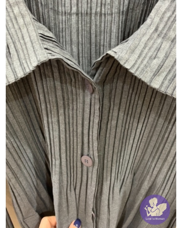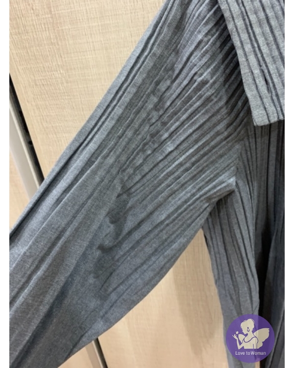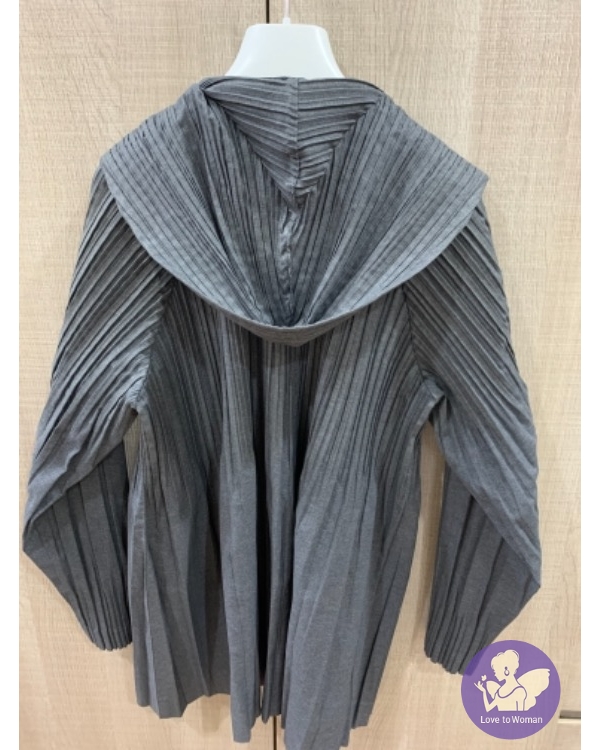 三宅一生Pleats please 霧灰色壓褶連帽外套