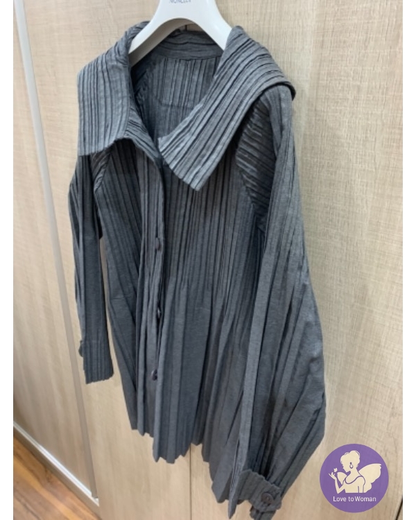 首頁 精品服飾 三宅一生Pleats please 霧灰色壓褶連帽外套