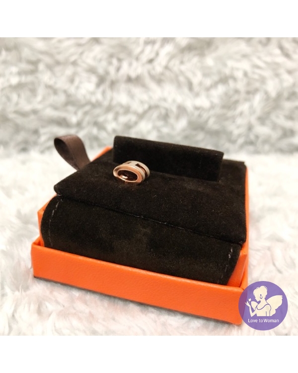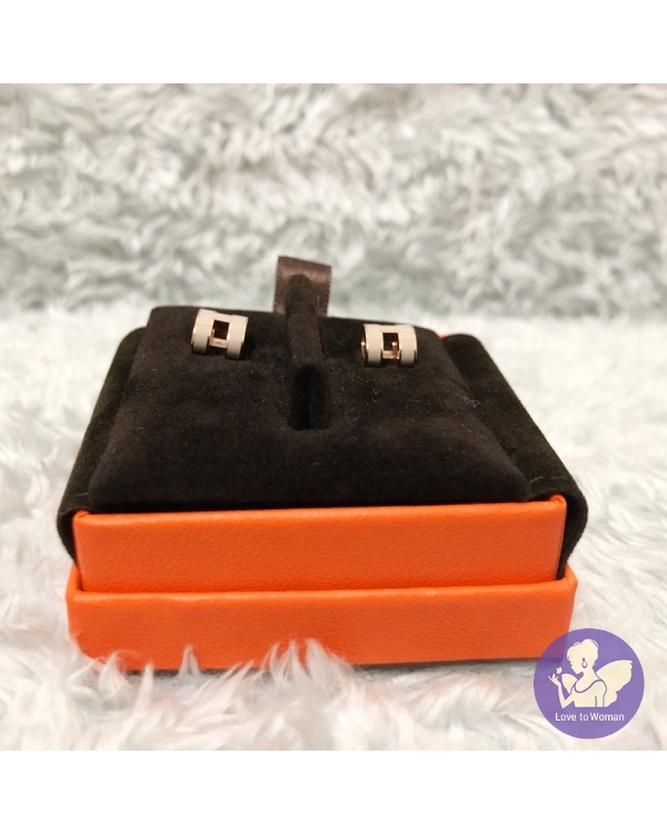 首頁 精品手錶 Hermes 愛馬仕 經典 mini pop H earrings橢圓 琺瑯 栗子色 奶茶色配玫瑰金 耳環 全新✨