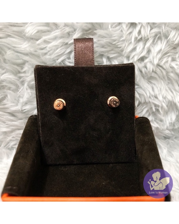 Hermes 愛馬仕 經典 mini pop H earrings橢圓 琺瑯 栗子色 奶茶色配玫瑰金 耳環 全新✨