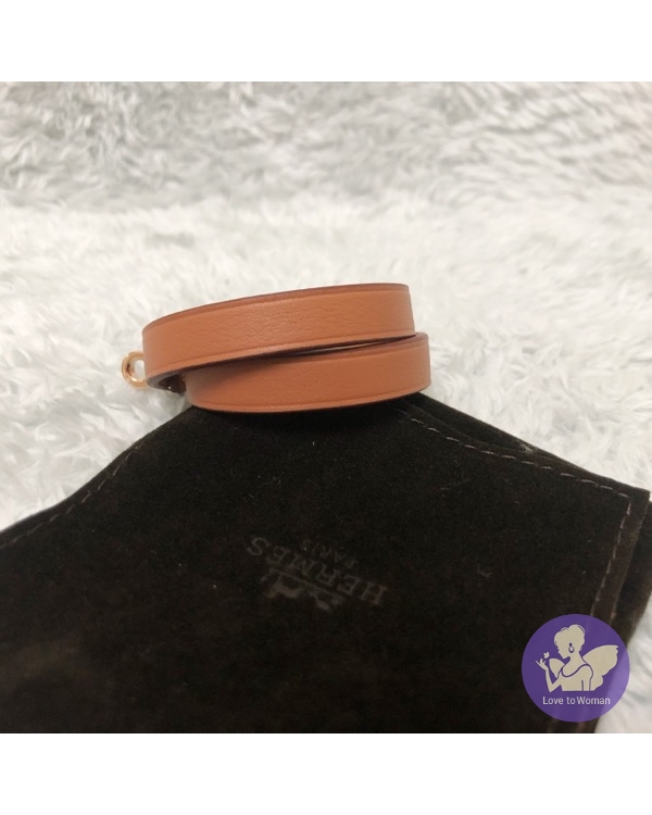 首頁 精品手錶 Hermès 愛馬仕 細版 Gold金棕色配玫瑰金 mini Kelly 雙圈 手環 Bracelet mini Kelly T1全新✨